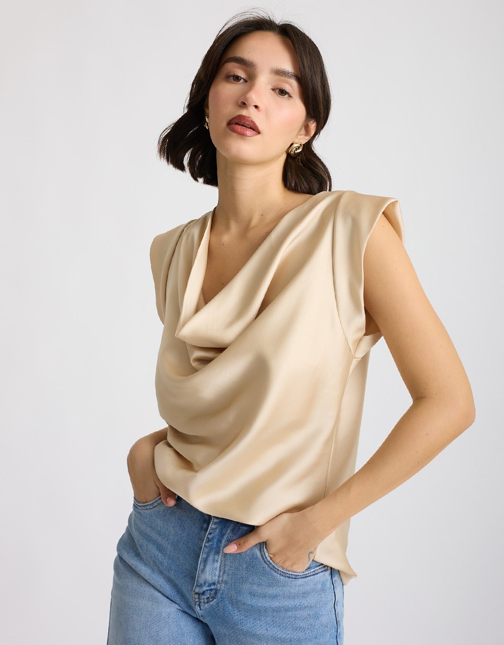 (Ogni 1,00 € speso = 1 punto)Camicetta dal tessuto effetto raso senza maniche con scollatura a gronda.
