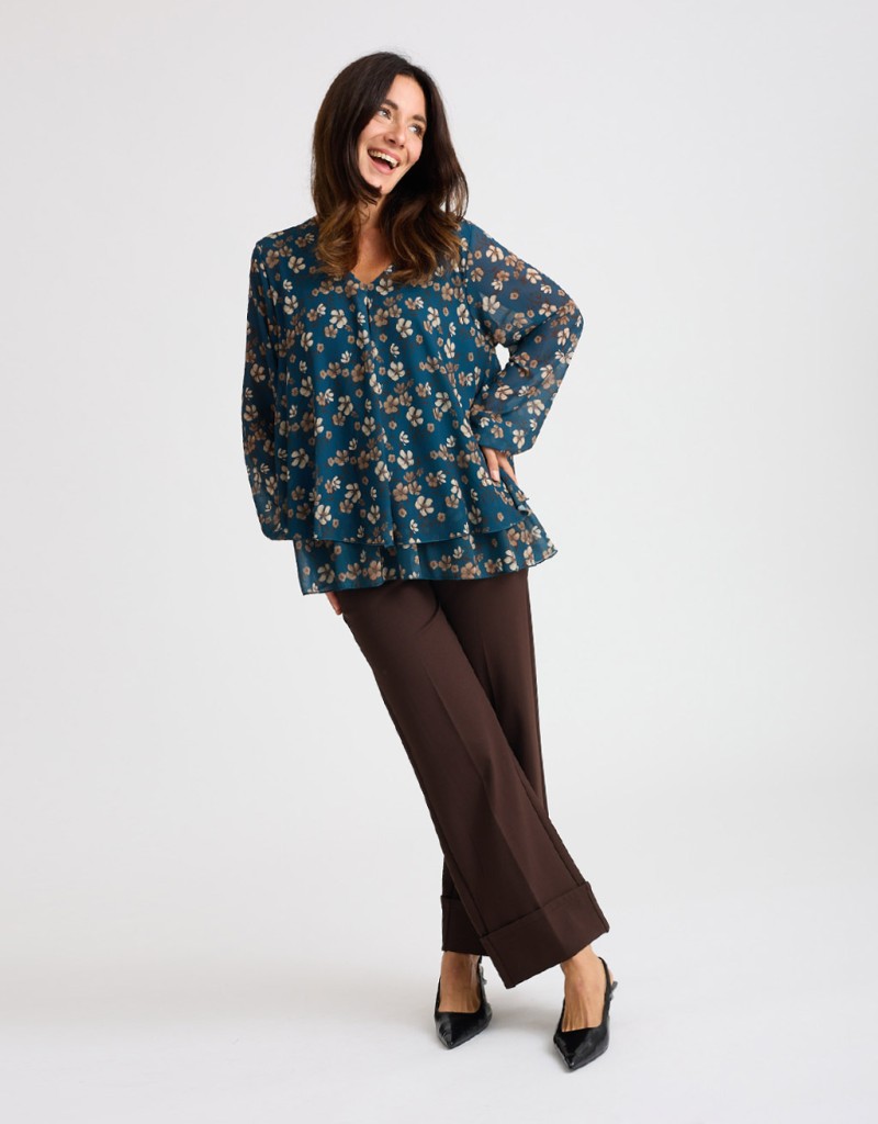 Gonna lunga a portafoglio con elastico ed accessorio in vita e drappeggio laterale.