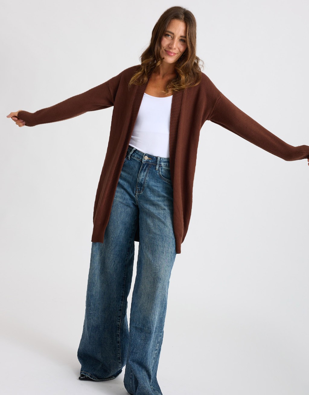 Cardigan lungo aperto in calda viscosa pesante caratterizzato dal bordo in costina.