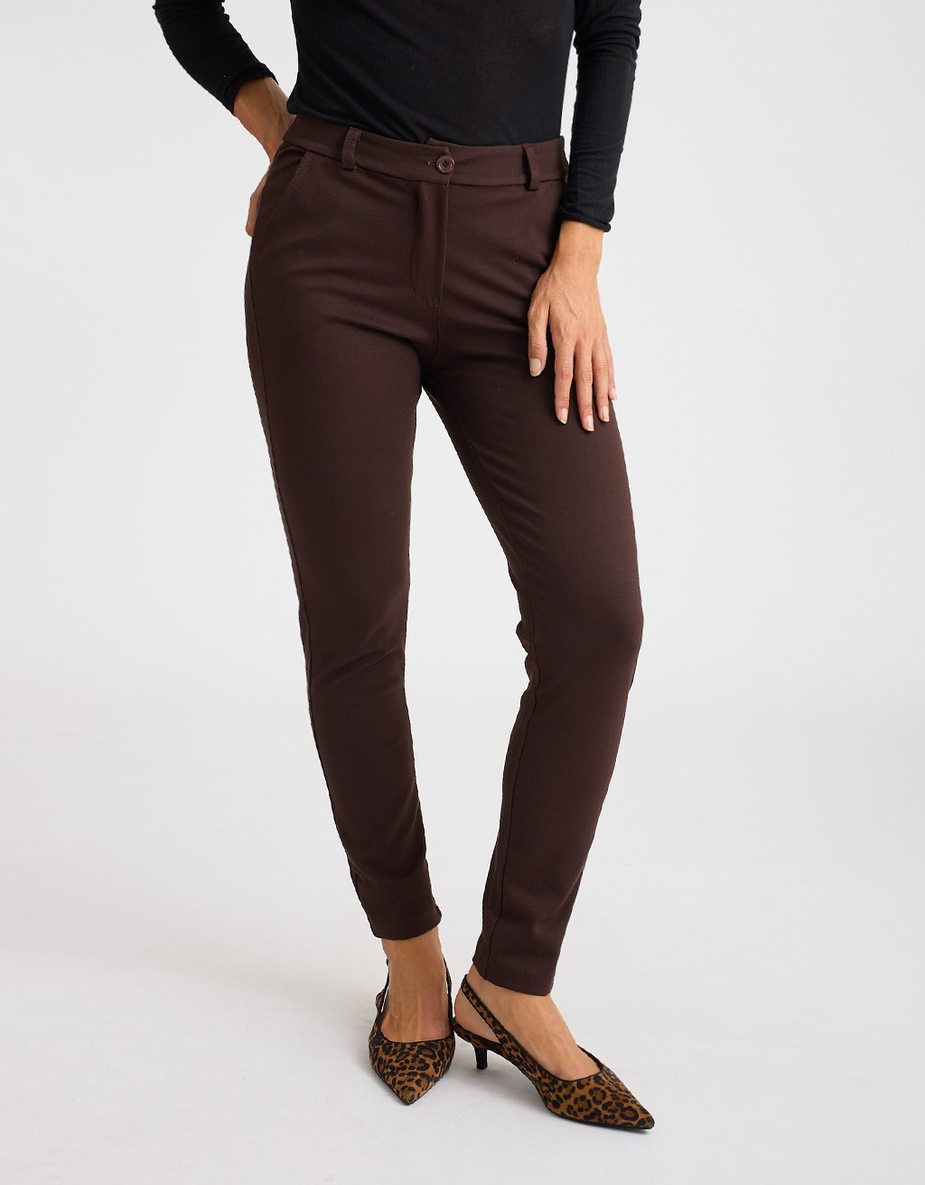 (Ogni 1,00 € speso = 1 punto)Pantalone basico in caldo ed elasticizzato punto milano con tasche alla francese e finta tasca a filetto dietro.
