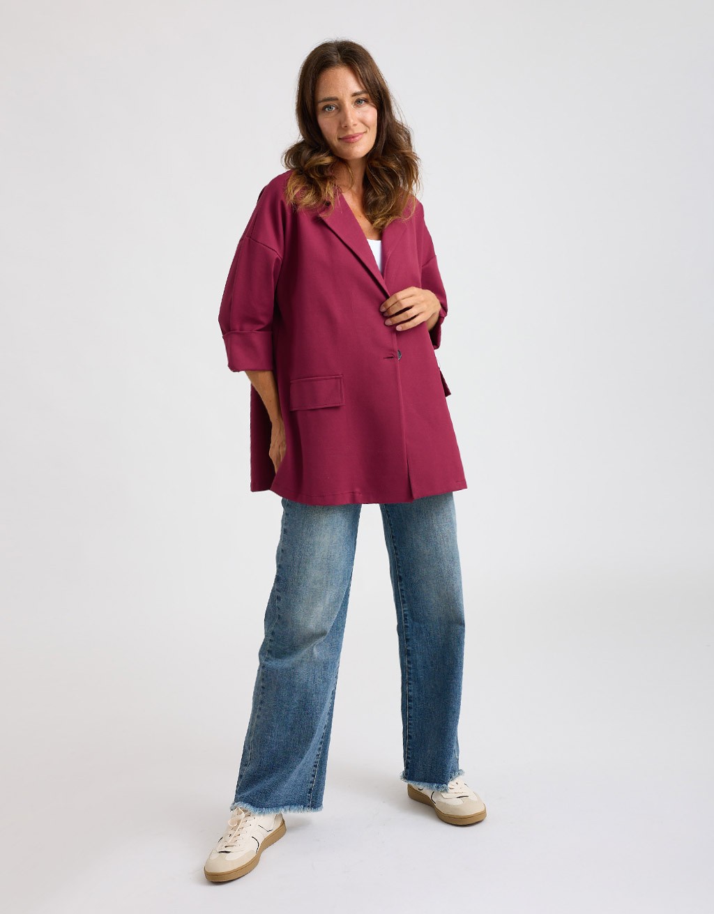 Giacca ampia pesante in tessuto elasticizzato. Collo a revers, manica lunga e chiusura frontale con bottoni. Si può abbinare con il Pantalone Felpetta Baloon (30141), oppure Pantalone Felpetta Basic (30138)