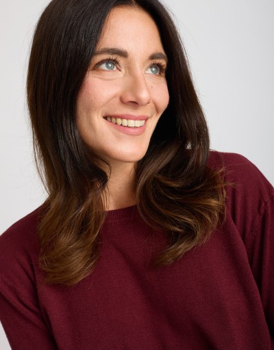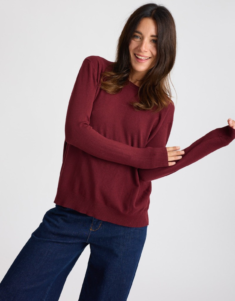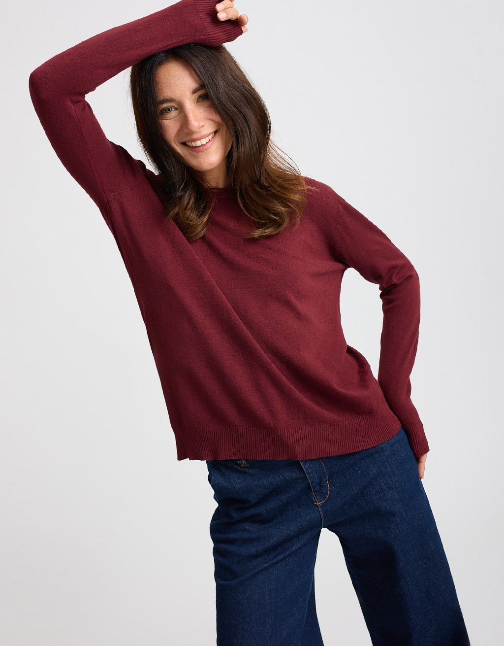 (Ogni 1,00 € speso = 1 punto)Maglioncino a girocollo in morbido tessuto misto viscosa con bordura a costine. Vestibilità morbida.