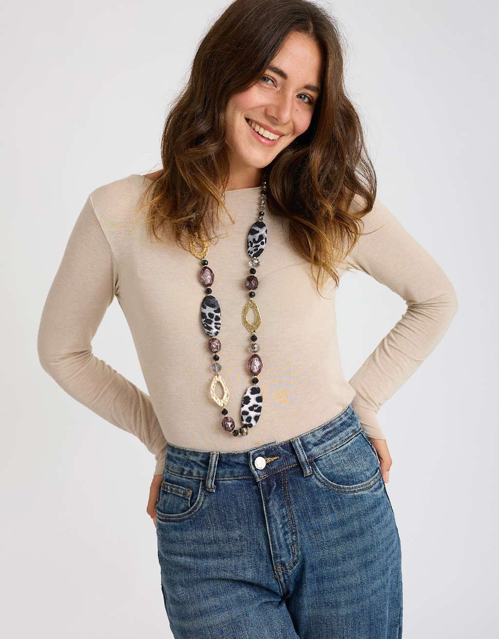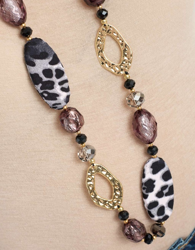 Collana con applicazioni animalier in tessuto.