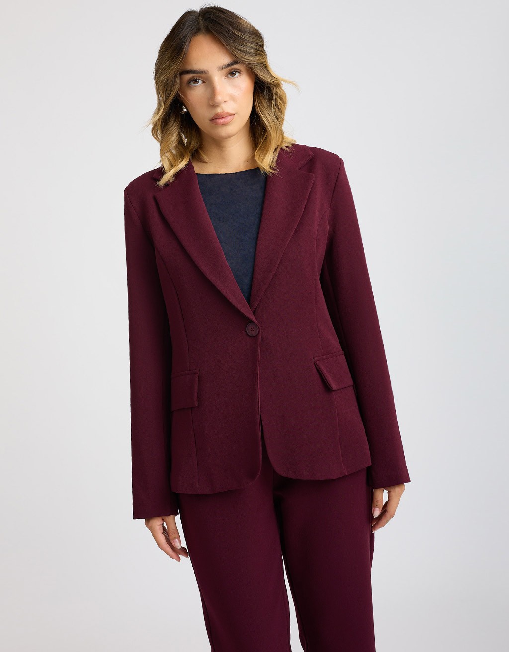 Giacca dal tessuto mano lana in tinta unita con collo a revers e chiusura frontale con bottone. Fodera e spalline cucite all'interno. Può essere abbinata al Pantalone elegante cod. 30102, Pantagonna elegante cod. 30101, al pantalone palazzo elegante 30103