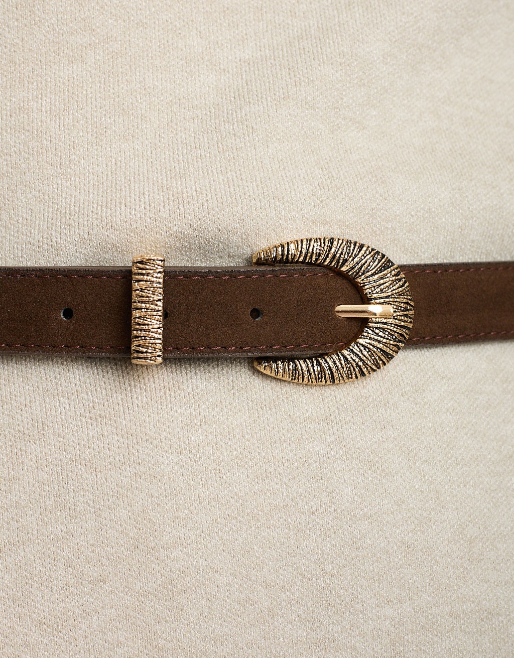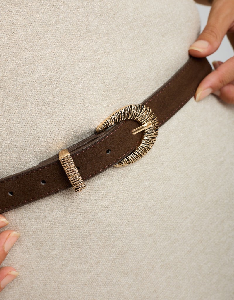 Cintura in tessuto effetto camoscio con fibbia ovale lavorata.
