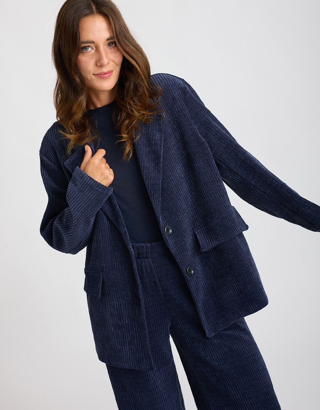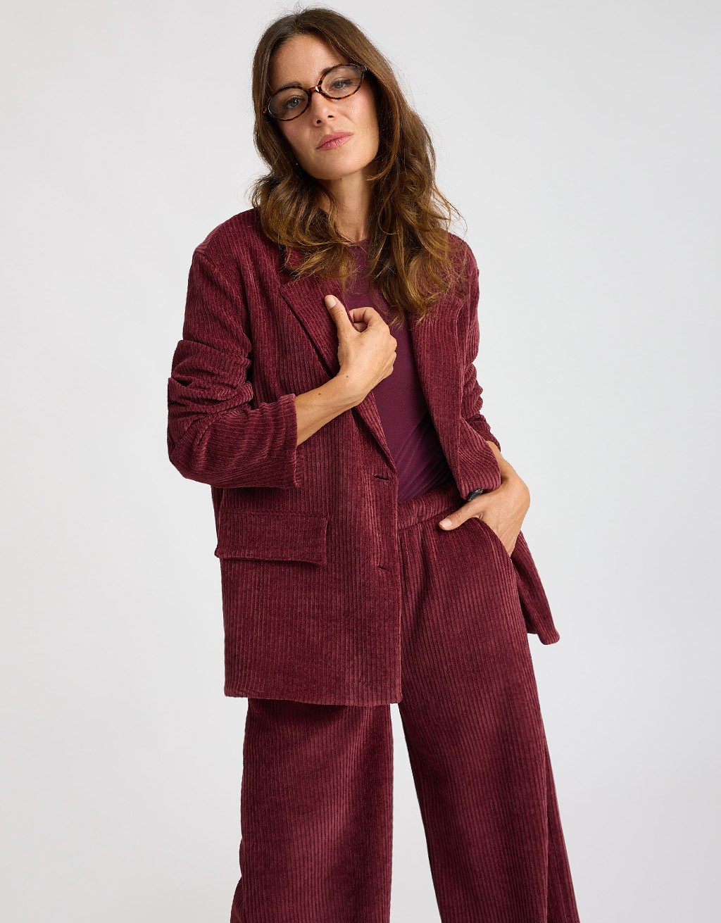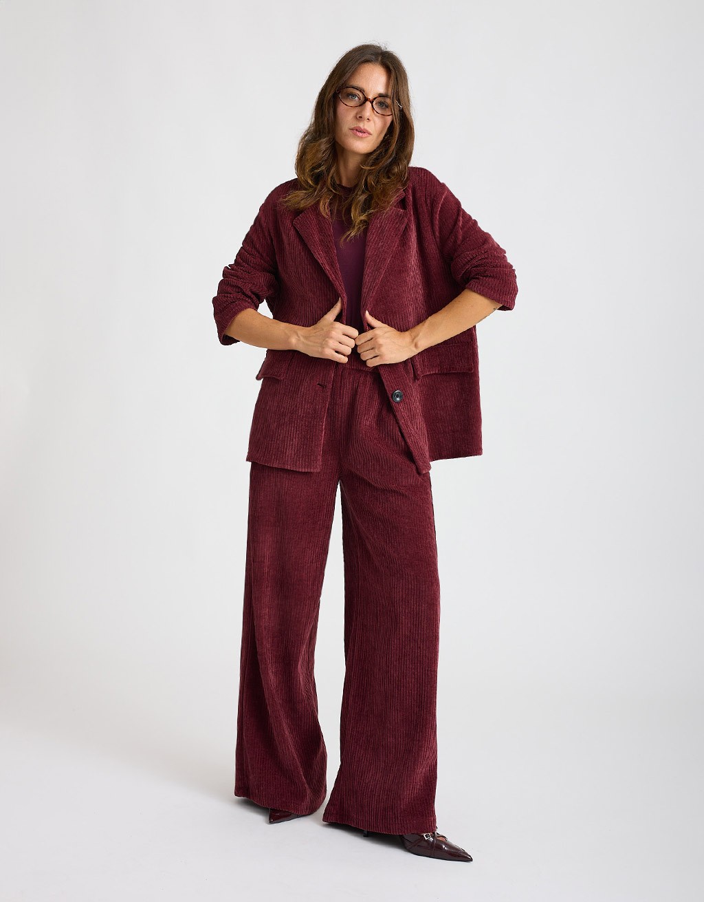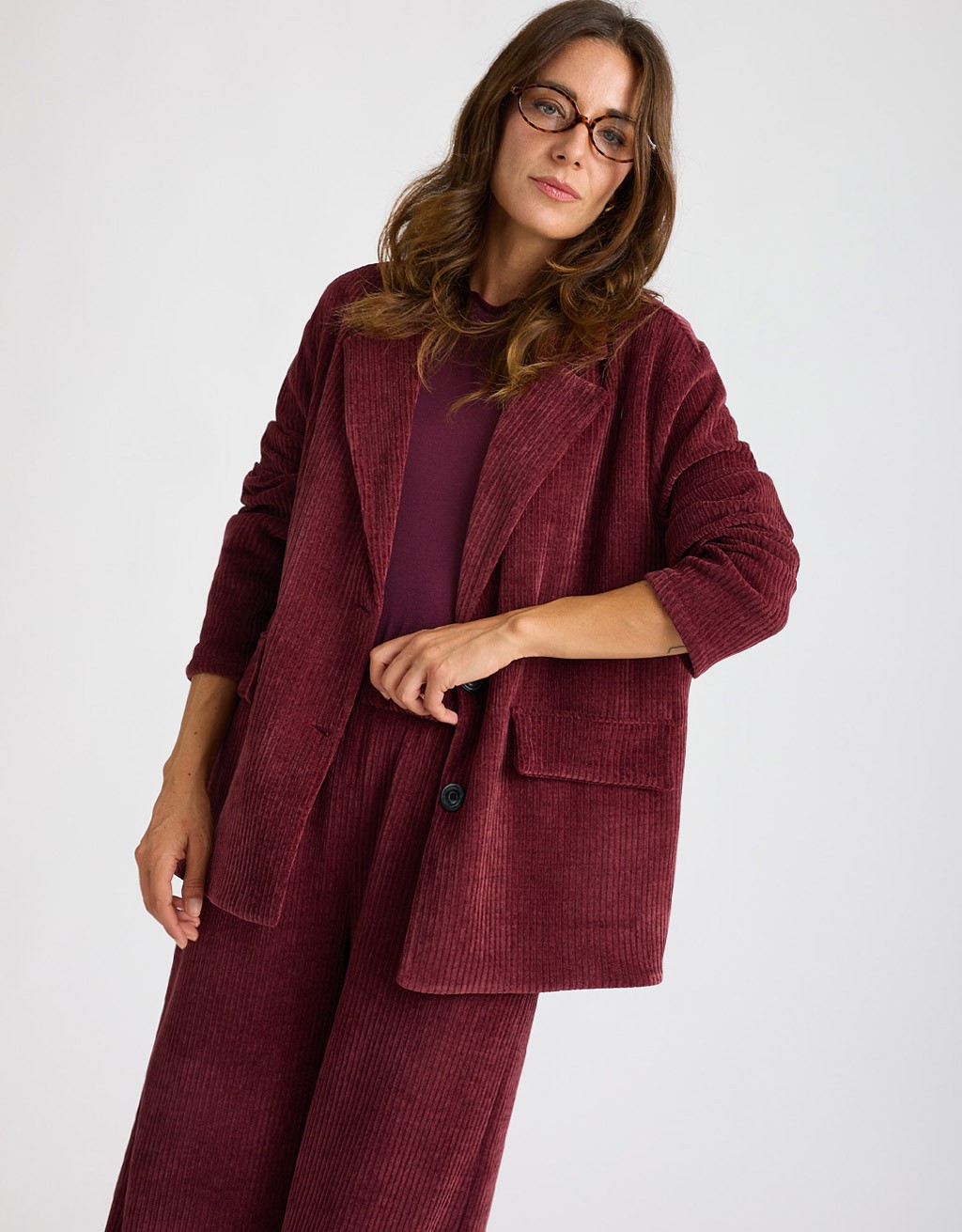 (Ogni 1,00 € speso = 1 punto)Blazer dalla linea over in velluto a costine. Collo a revers e chiusura frontale con bottone. Volendo può essere abbinato al pantalone palazzo Costa Velluto cod. 30360