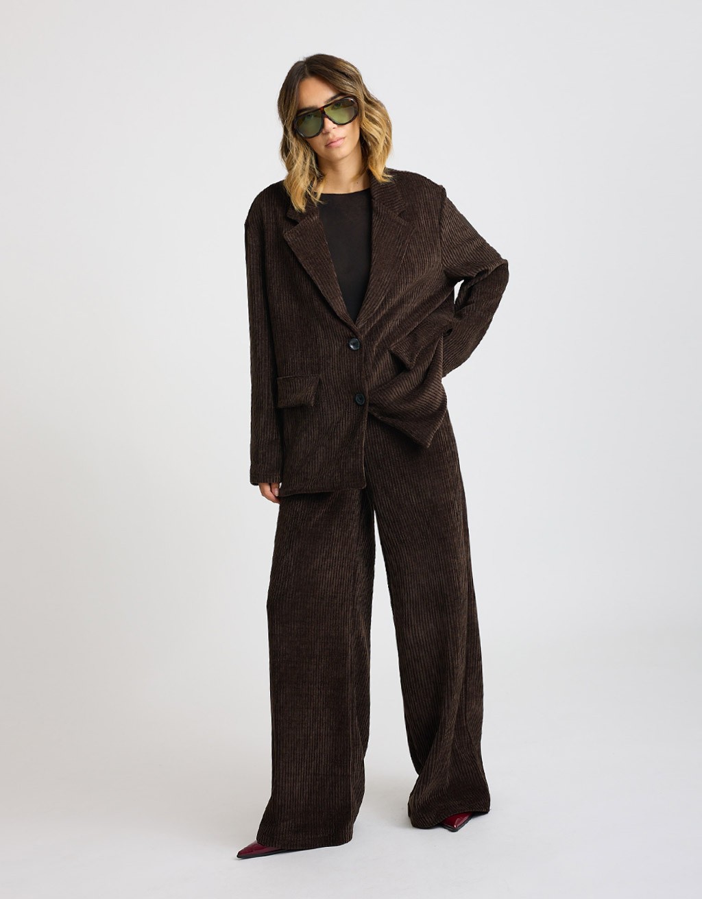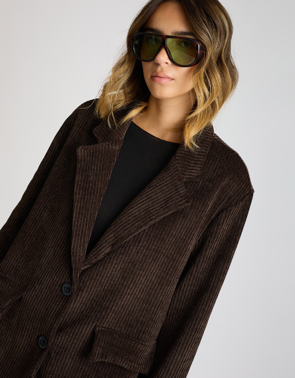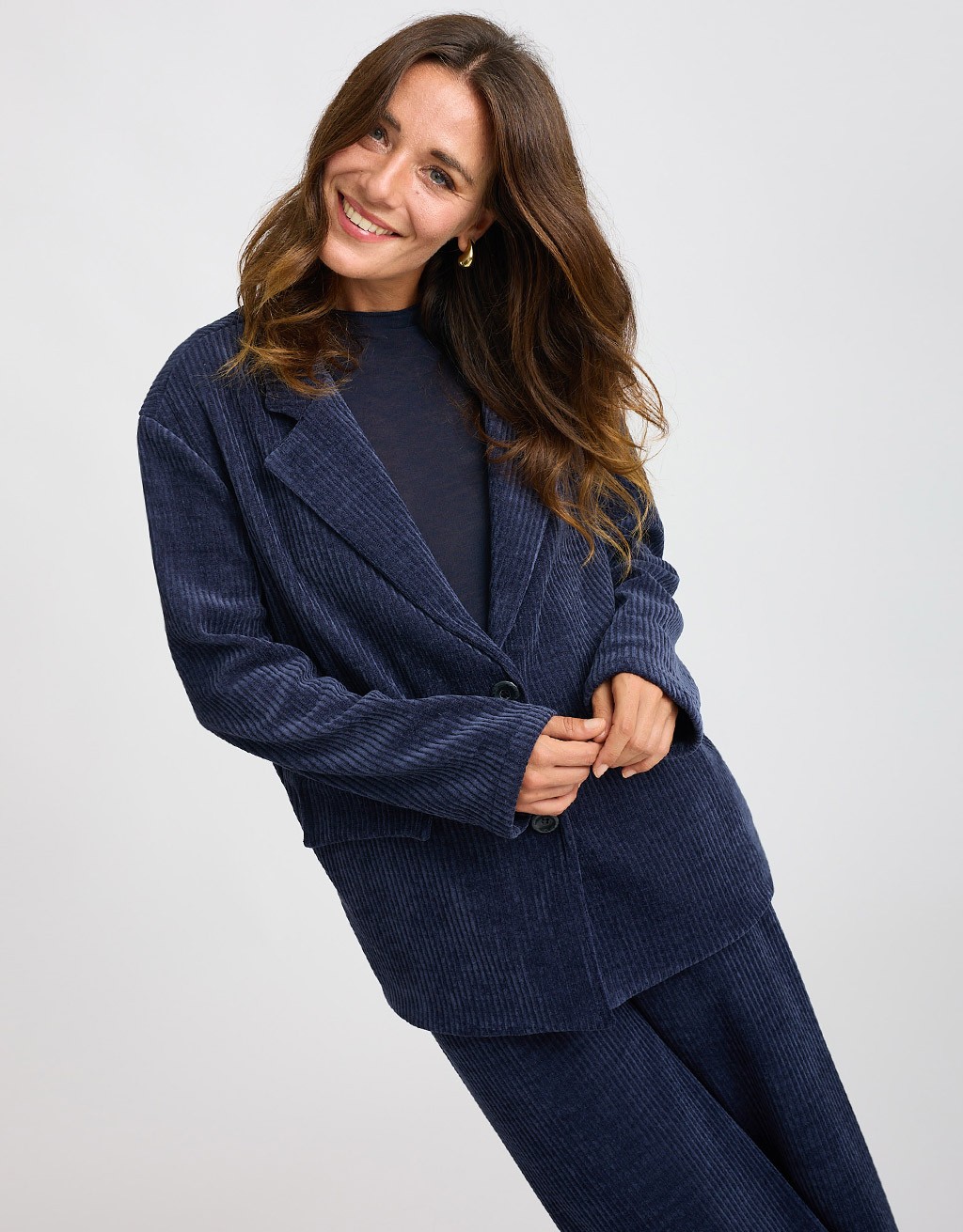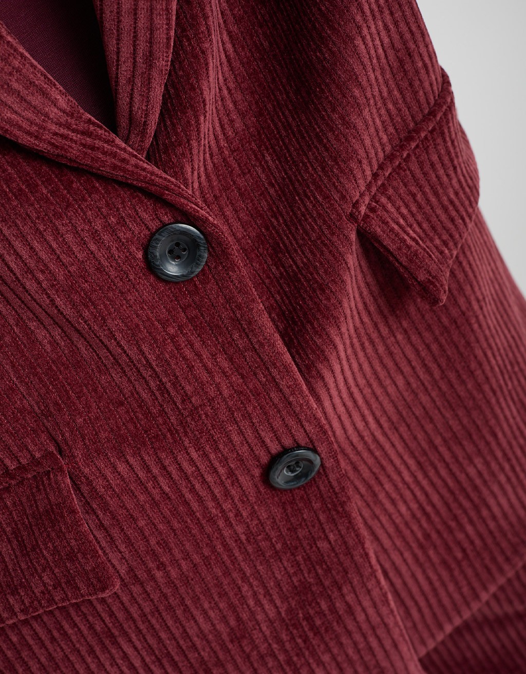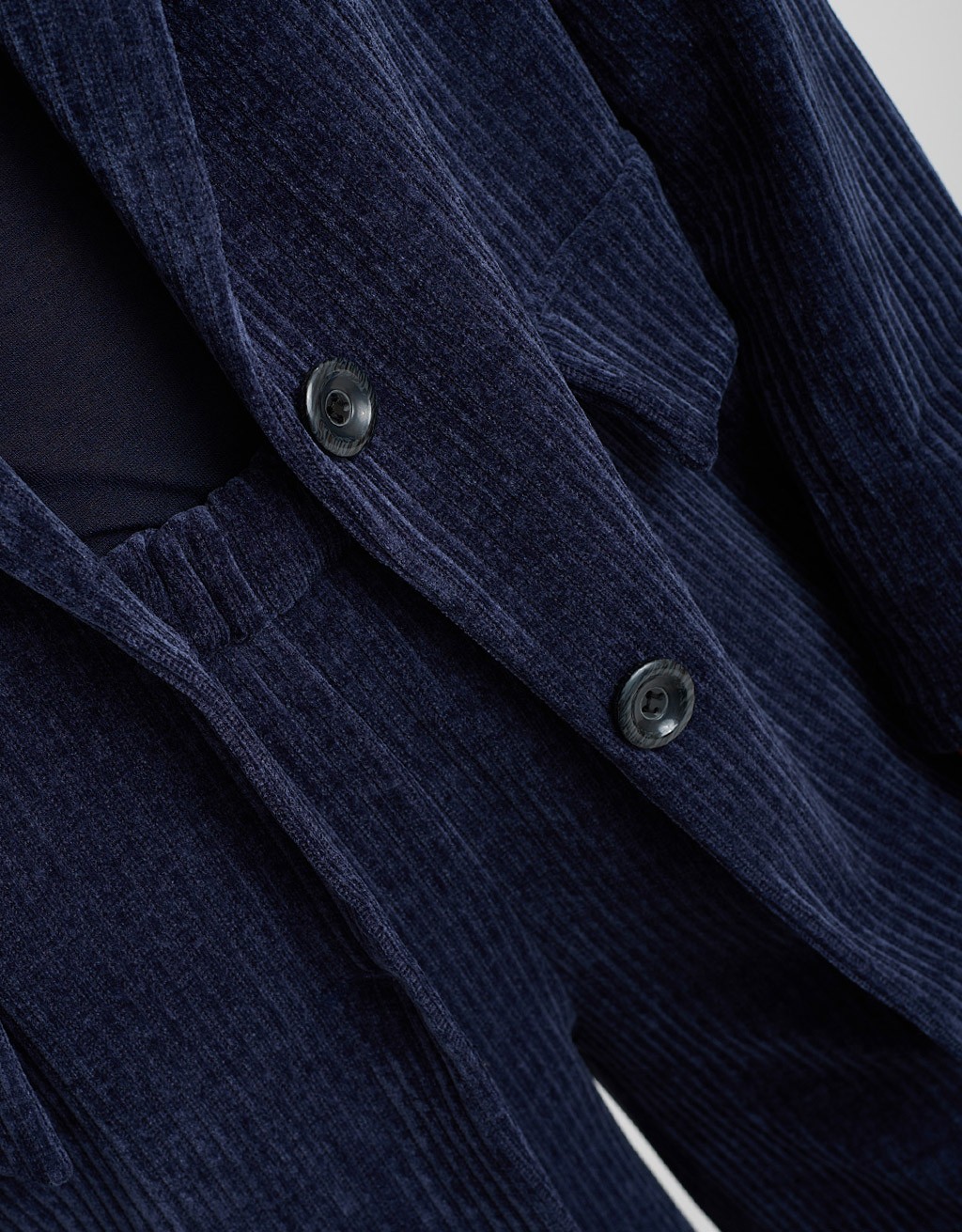 (Ogni 1,00 € speso = 1 punto)Blazer dalla linea over in velluto a costine. Collo a revers e chiusura frontale con bottone. Volendo può essere abbinato al pantalone palazzo Costa Velluto cod. 30360