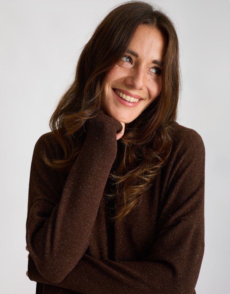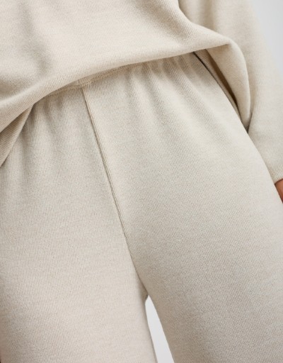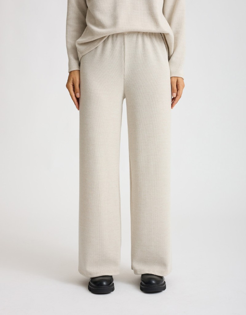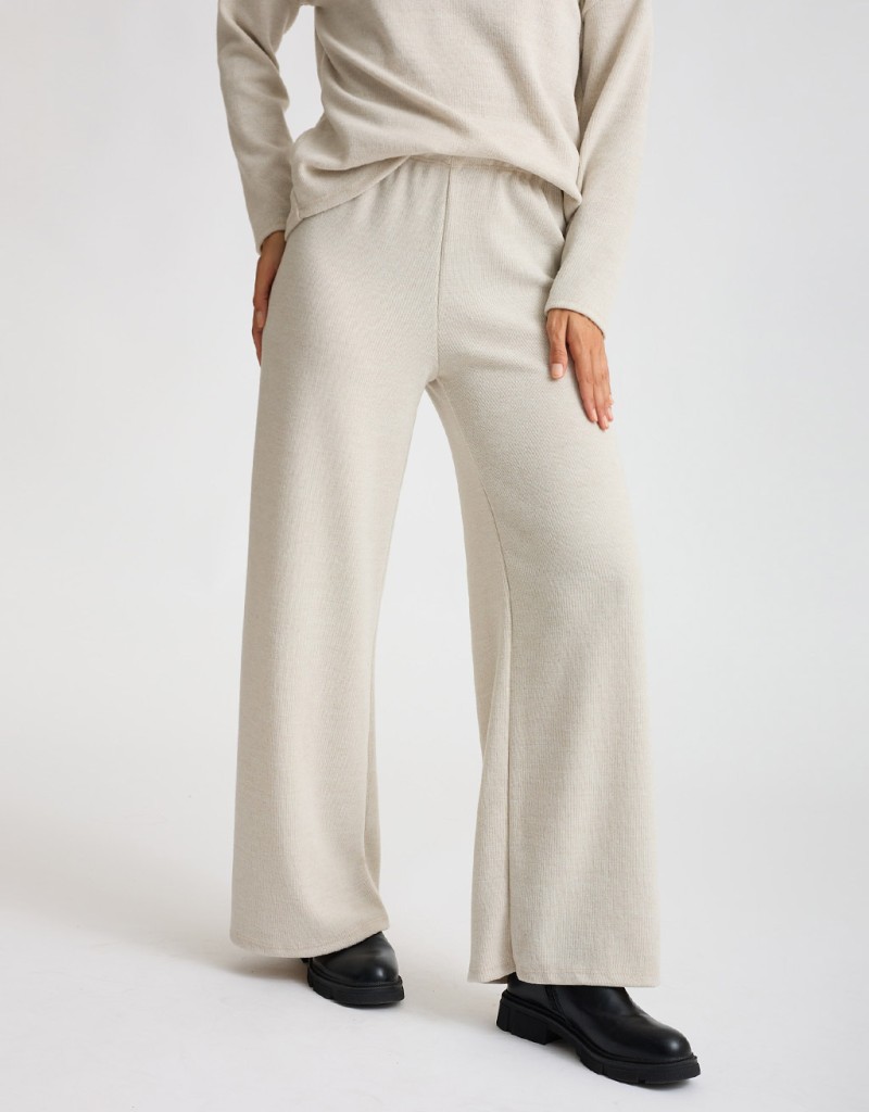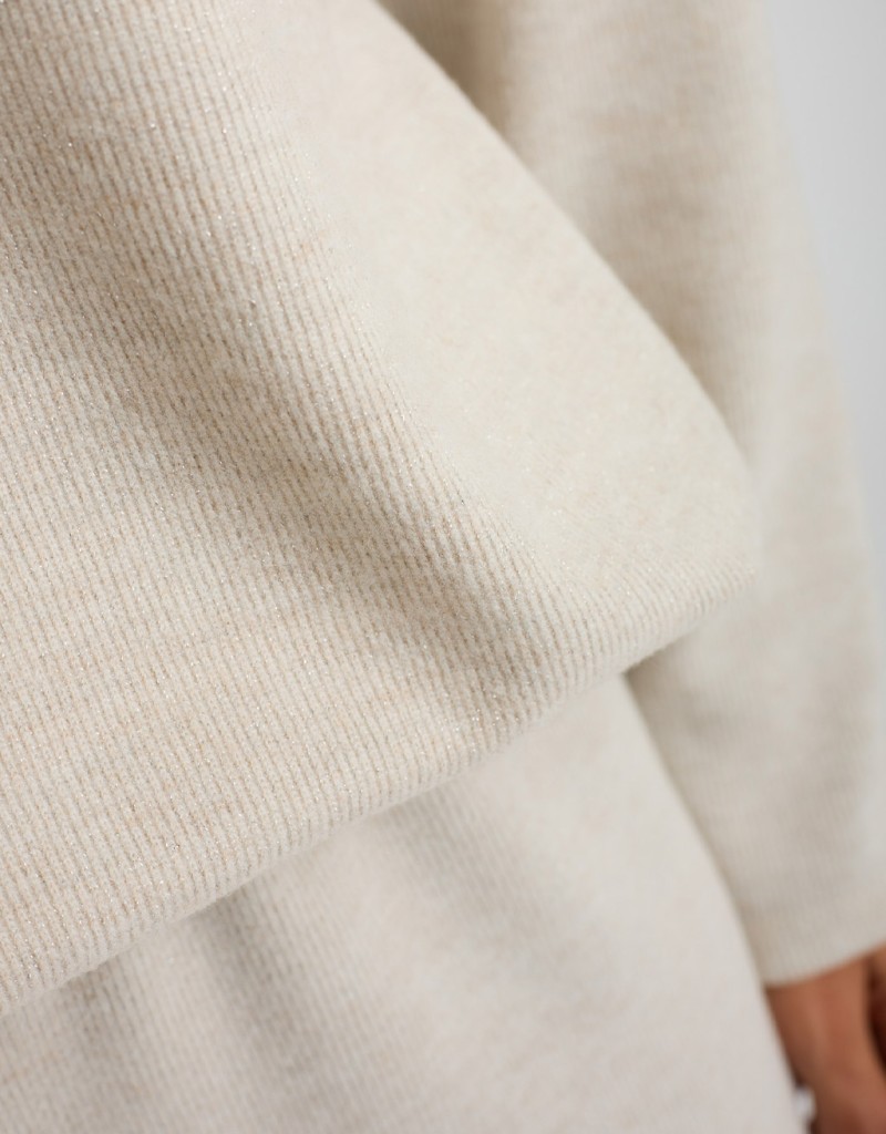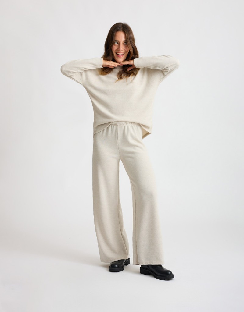 Pantalone a palazzo in morbida maglia con lurex. Elastico in vita che ne regola la vestibilità. Abbinabile con Maglioncino Over Lurex (art. 30389)
