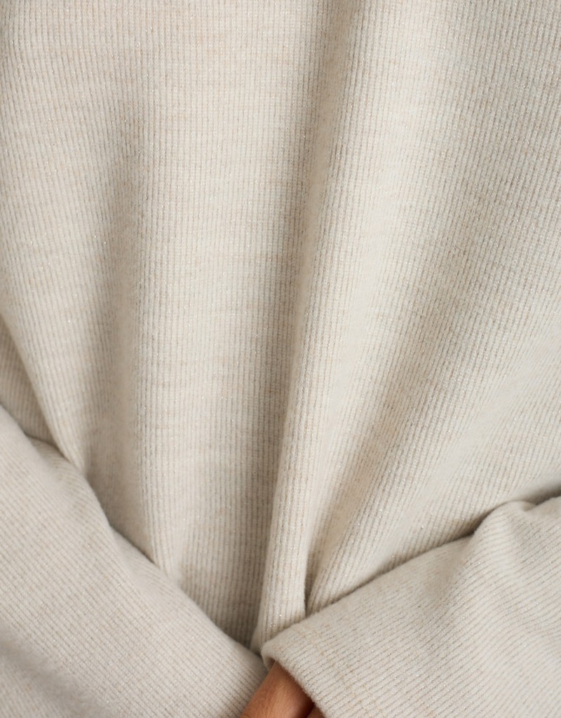 Maglioncino over con lurex. Abbinabile con Pantalone Palazzo In Maglia Lurex (art. 30389)