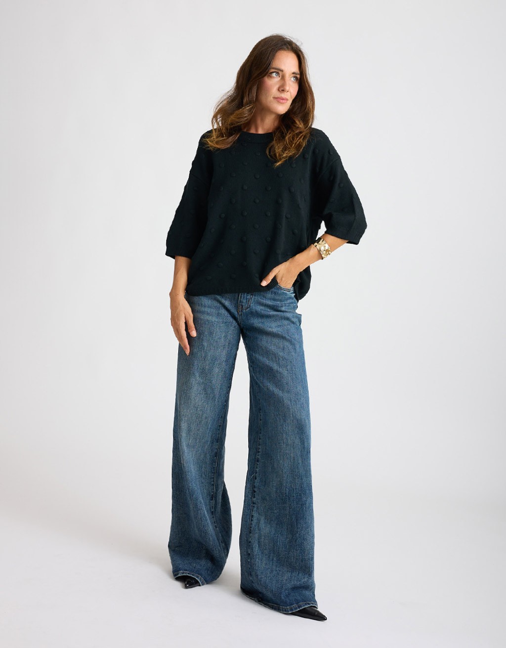 Magline in morbido tessuto tinta unita con lavorazioni in rilievo. Manica corta e scollatura a giro, vestibilità comoda.