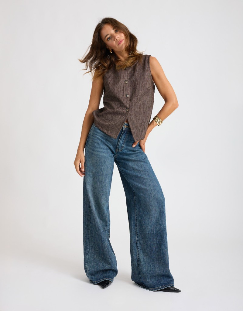 Abbinalo al pantalone palazzo in mano lana per un completo curato, con jeans e sneakers per un look casual o sopra una camicia con pantalone sartoriale per l’ufficio.