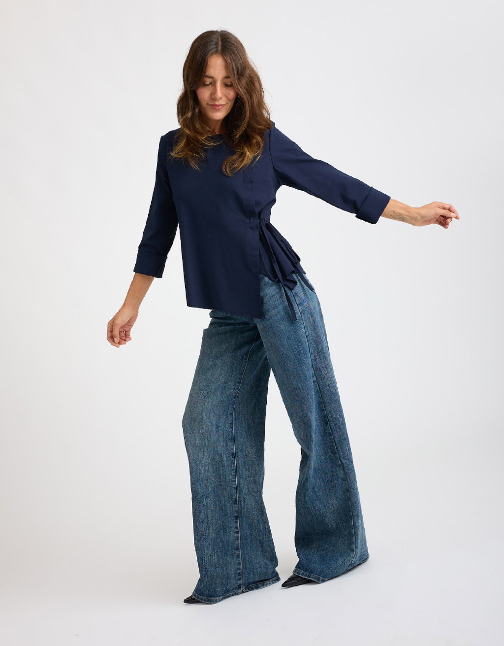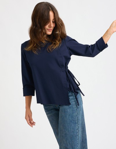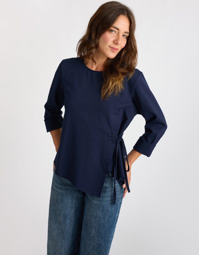 Felpetta pesante in morbido tessuto elasticizzato, manica lunga e scollatura a giro, con chiusura laterale a laccetto che crea un effetto portafoglio. Un capo comodo e versatile, perfetto per look casual o più curati. Può essere abbinata al pantalone felpetta portafoglio (30471) o al pantalone felpetta con cuciture (30472) per creare un completo coordinato e di tendenza.