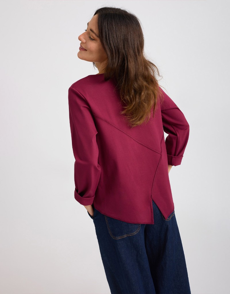 Felpetta pesante in morbido tessuto elasticizzato, manica lunga e dettagli di cuciture in rilievo su tutto il capo. Il fondo presenta punte dietro sulla schiena, aggiungendo un tocco di originalità. Può essere abbinata al pantalone felpetta portafoglio (30471) o al pantalone felpetta con cuciture (30472) per creare un completo coordinato e moderno.