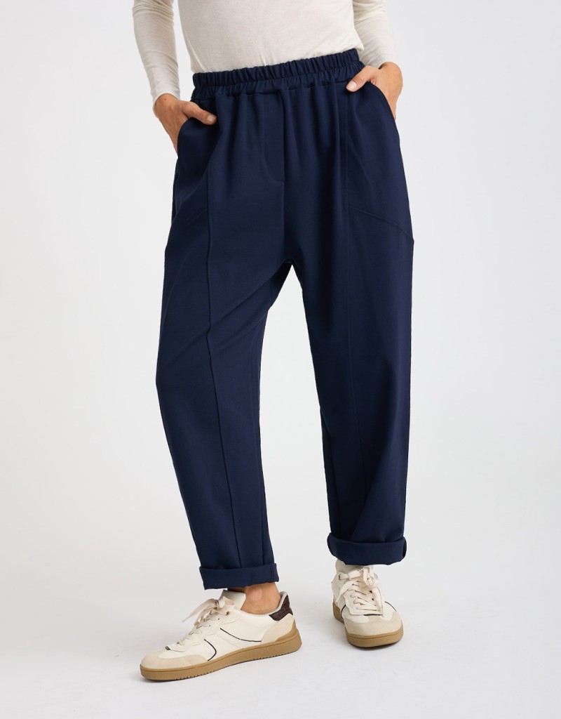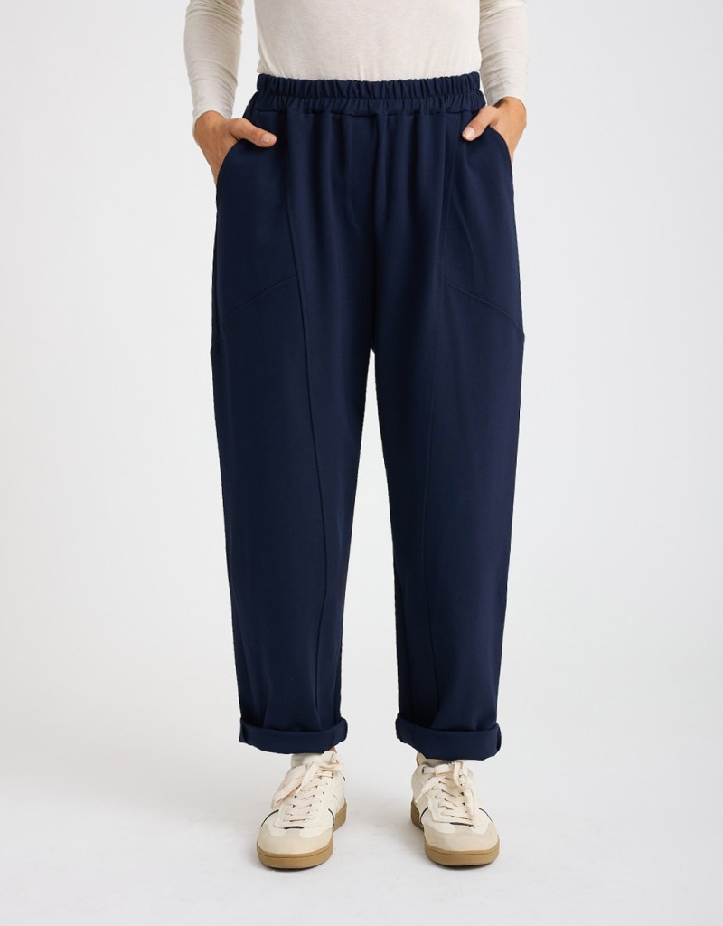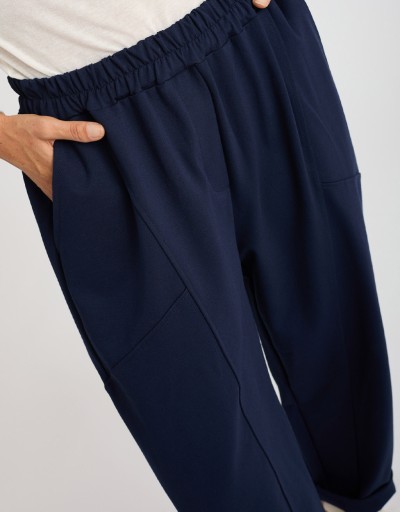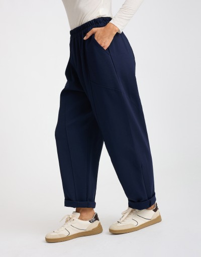Pantalone in felpa pesante dal tessuto morbido ed elasticizzato, con elastico in vita per una vestibilità adattabile. Presenta tasche laterali e cuciture in rilievo frontali che aggiungono stile. Può essere abbinato alla felpetta cuciture (30470), alla felpetta portafoglio (30469) o al blazer felpetta over (30473) per un completo coordinato moderno e versatile.