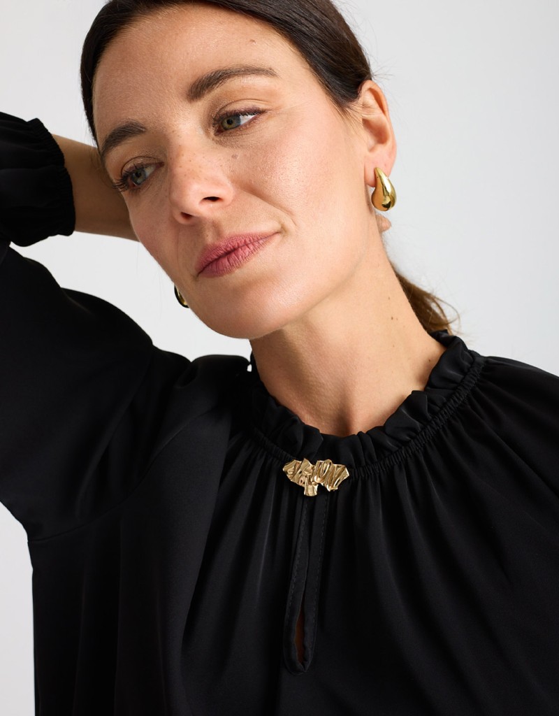 Girocollo con arricciatura e spilla dorata