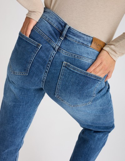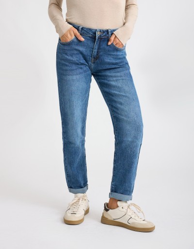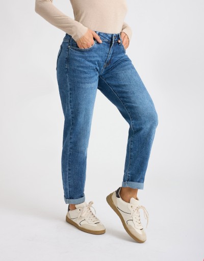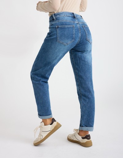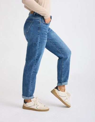 Jeans mom fit super elasticizzato, il perfetto equilibrio tra comfort e stile. Il tessuto elasticizzato assicura libertà di movimento e una vestibilità impeccabile. Un modello intramontabile, rivisitato in chiave moderna per adattarsi a ogni momento della giornata.
