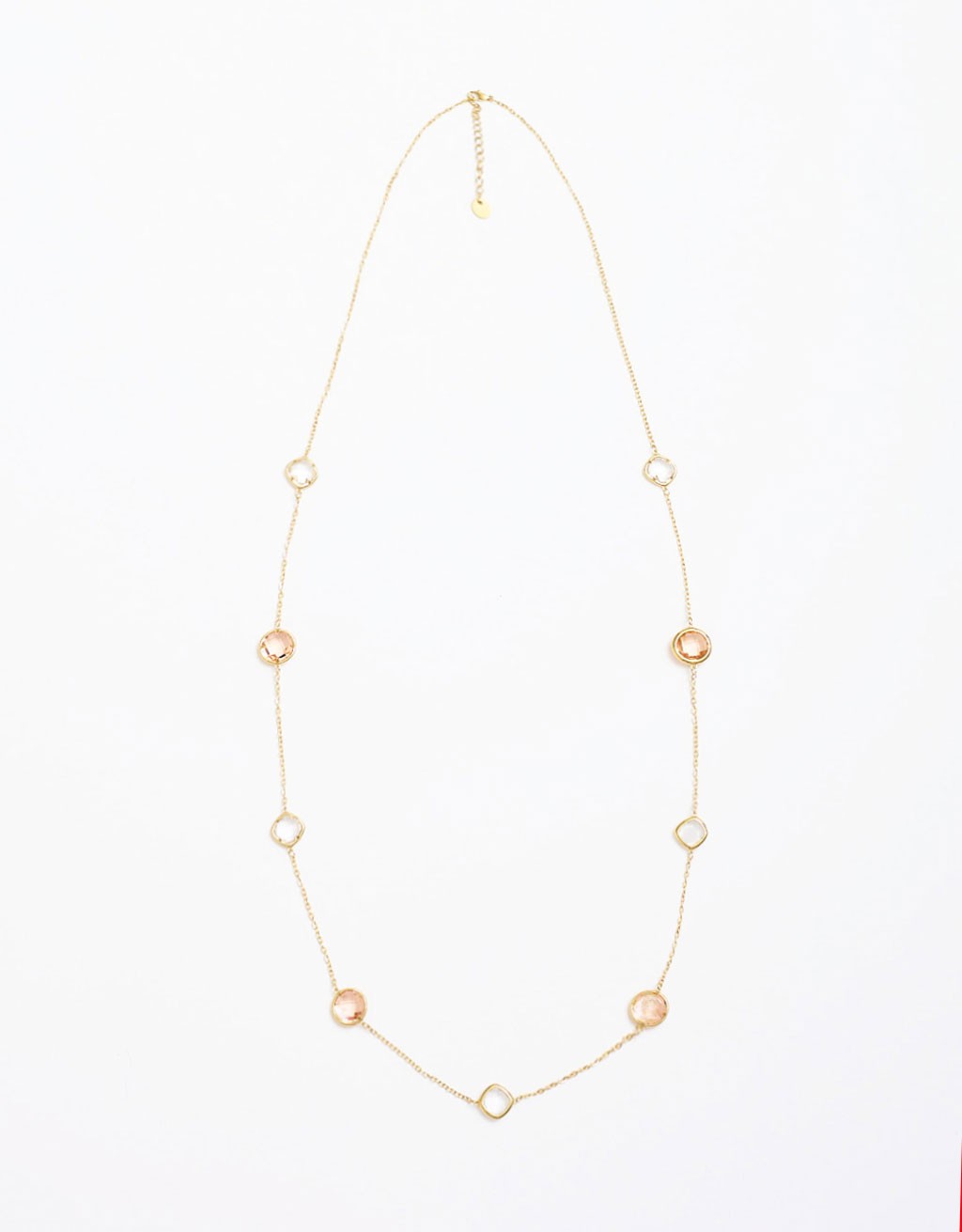 Collana in acciaio inossidabile lucido, impreziosito da una fila di gemme di vetro con colori di tendenza che catturano la luce ad ogni movimento. Con la sua finitura raffinata e il design slim, dona un tocco gioiello discreto ma molto chic. Ideale per il giorno e la sera, è una scelta versatile che valorizza qualsiasi outfit