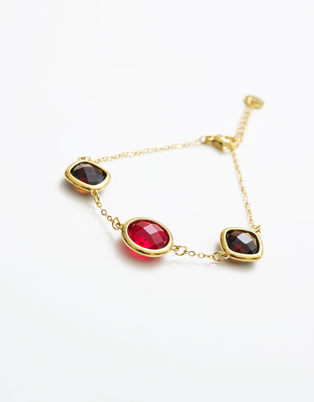 (Ogni 1,00 € speso = 1 punto)Bracciale in acciaio inossidabile lucido, impreziosito da una fila di gemme con colori di tendenza che catturano la luce ad ogni movimento. Con la sua finitura raffinata e il design slim, dona un tocco gioiello discreto ma molto chic, perfetto sia da solo che abbinato ad altri accessori. Ideale per il giorno e la sera, è una scelta versatile che valorizza qualsiasi outfit