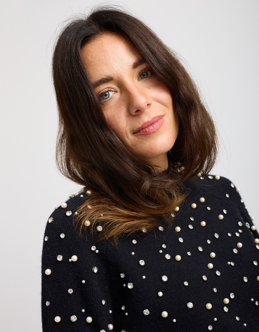 • Perle e strass applicati per un tocco luminoso