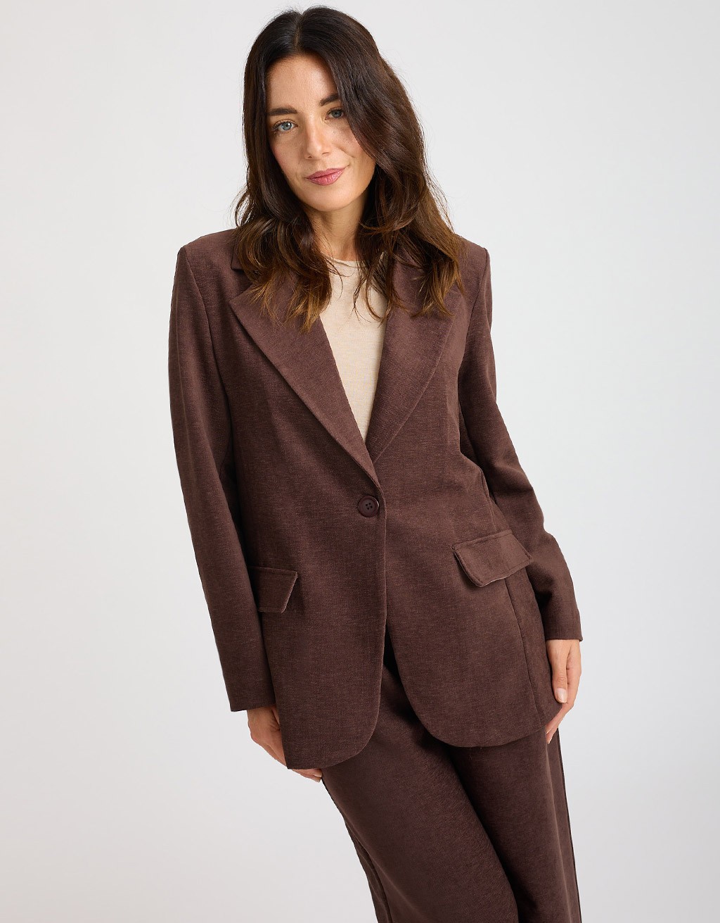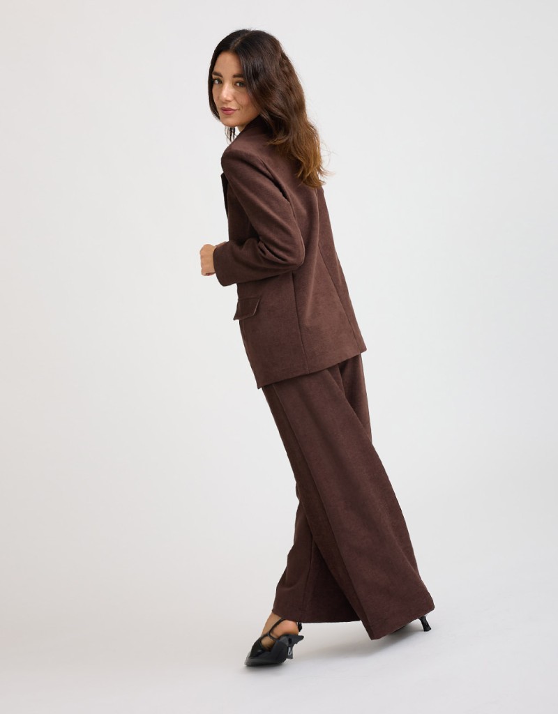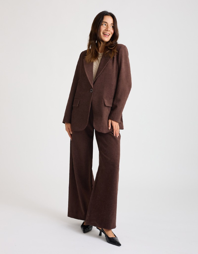Il blazer in ciniglia è il capo perfetto per dare un tocco elegante ai tuoi outfit di stagione. Il tessuto vellutato dona luminosità, mentre la vestibilità comoda e il collo a revers valorizzano la figura con stile. Le spalline e la fodera interna completano il look con un tocco sartoriale. Indossalo con il pantalone palazzo in ciniglia cod. 30587 per un completo raffinato e attualissimo, ideale dall’ufficio all’aperitivo.