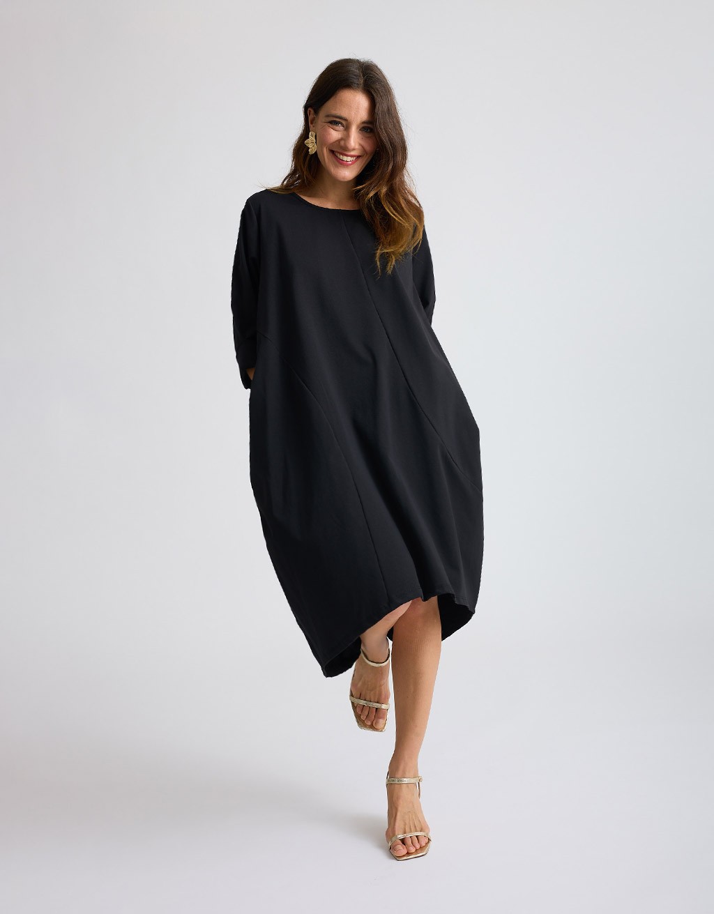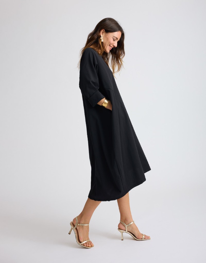 Abito lungo in cotone modello ovetto con tasche laterali.