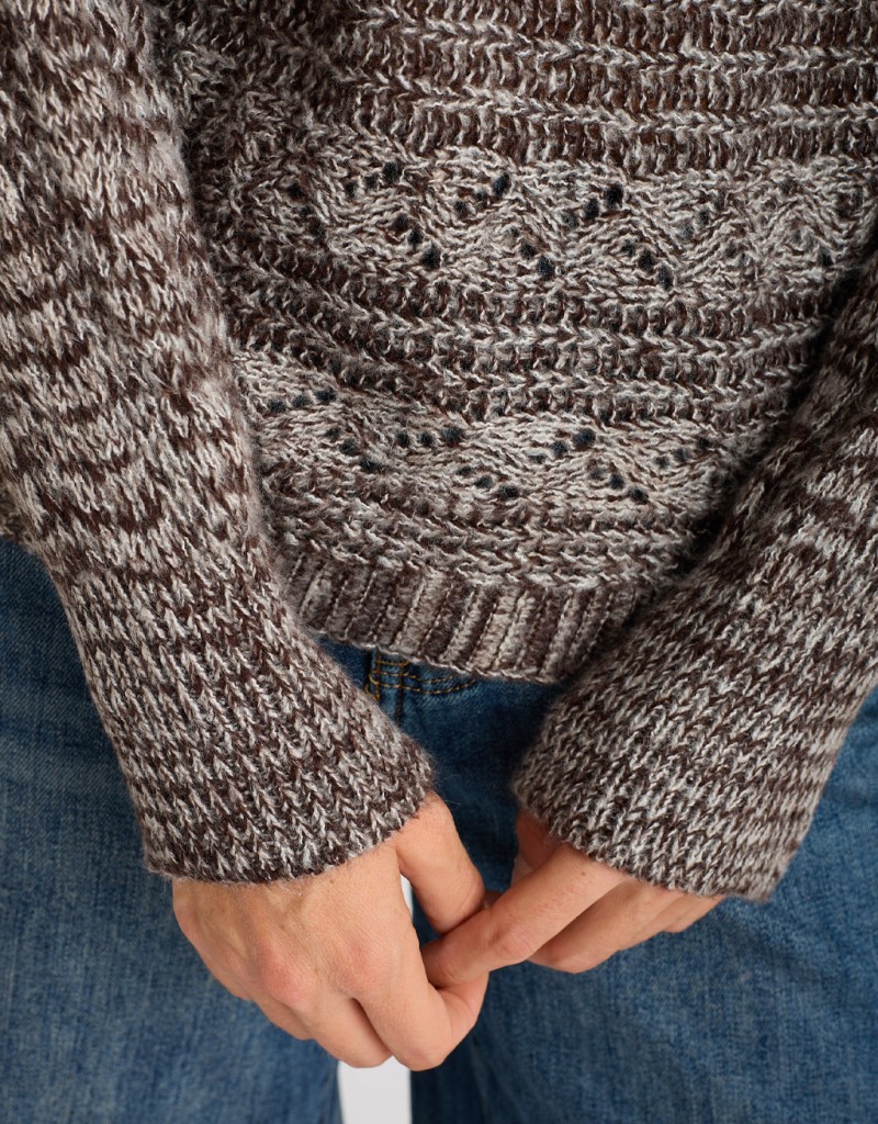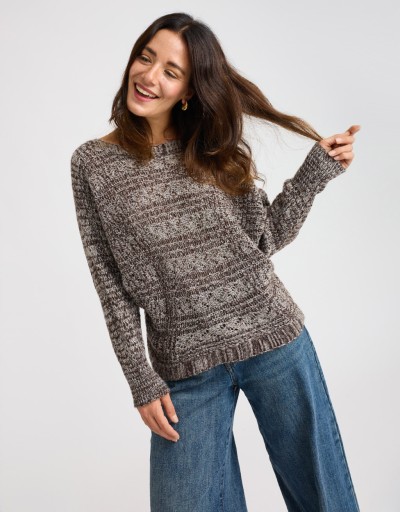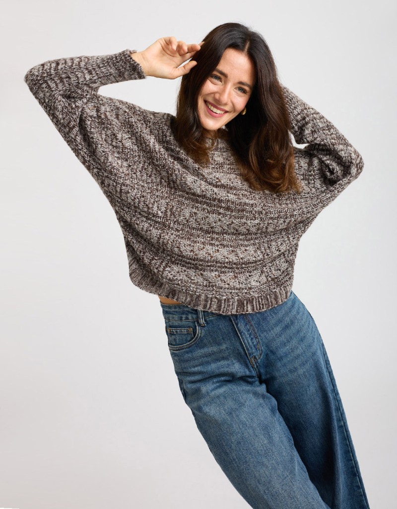Un maglione morbido e avvolgente, perfetto per accompagnarti con stile nelle giornate più fresche. Il filato melange e la lavorazione soffice donano un effetto raffinato e contemporaneo, mentre la scollatura ampia e la manica a pipistrello regalano un tocco femminile e rilassato. Un capo comodo ma ricco di personalità.