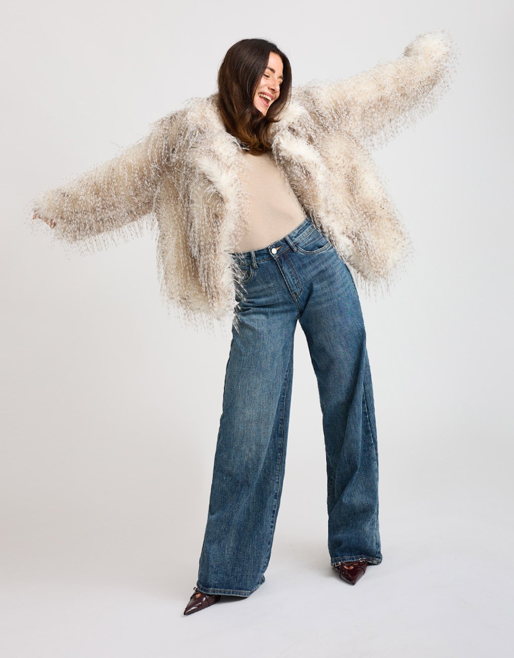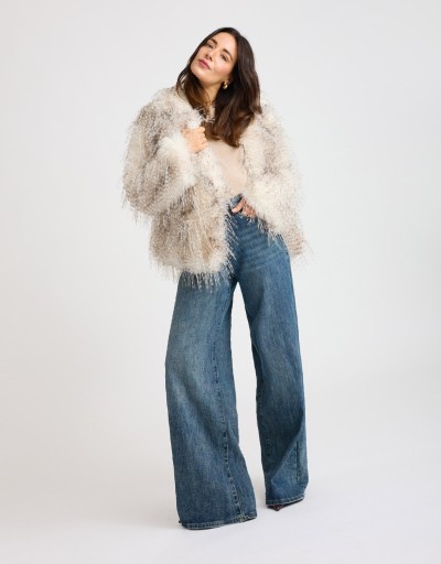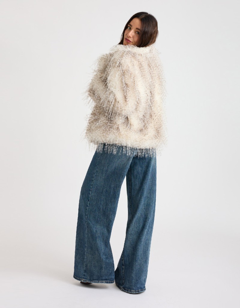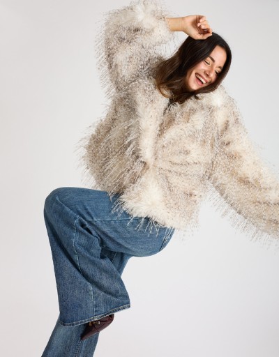 Giubbotto corto effetto pelliccia: morbido, caldo e super chic! Il taglio corto slancia la figura, mentre il collo a revers e le tasche laterali nascoste aggiungono quel tocco sofisticato che rende ogni look più curato. Perfetto per le giornate fresche di ottobre o per dare un twist glamour ai tuoi outfit invernali.