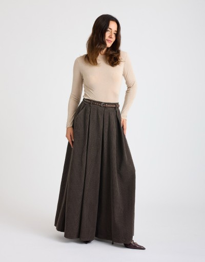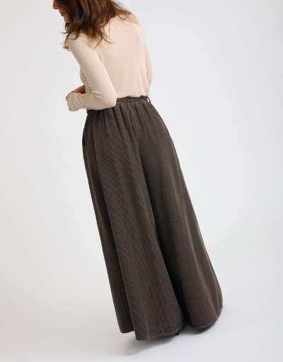 Un capo che unisce eleganza e comfort: la pantagonna in velluto a costine è perfetta per affrontare la stagione con stile. Morbida, calda e dal taglio fluido, valorizza ogni silhouette grazie alle pinces frontali e all’elastico in vita. Un mix ideale tra praticità e fascino retrò, da indossare ogni giorno con personalità.