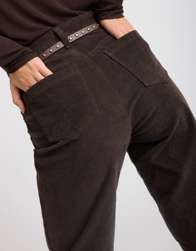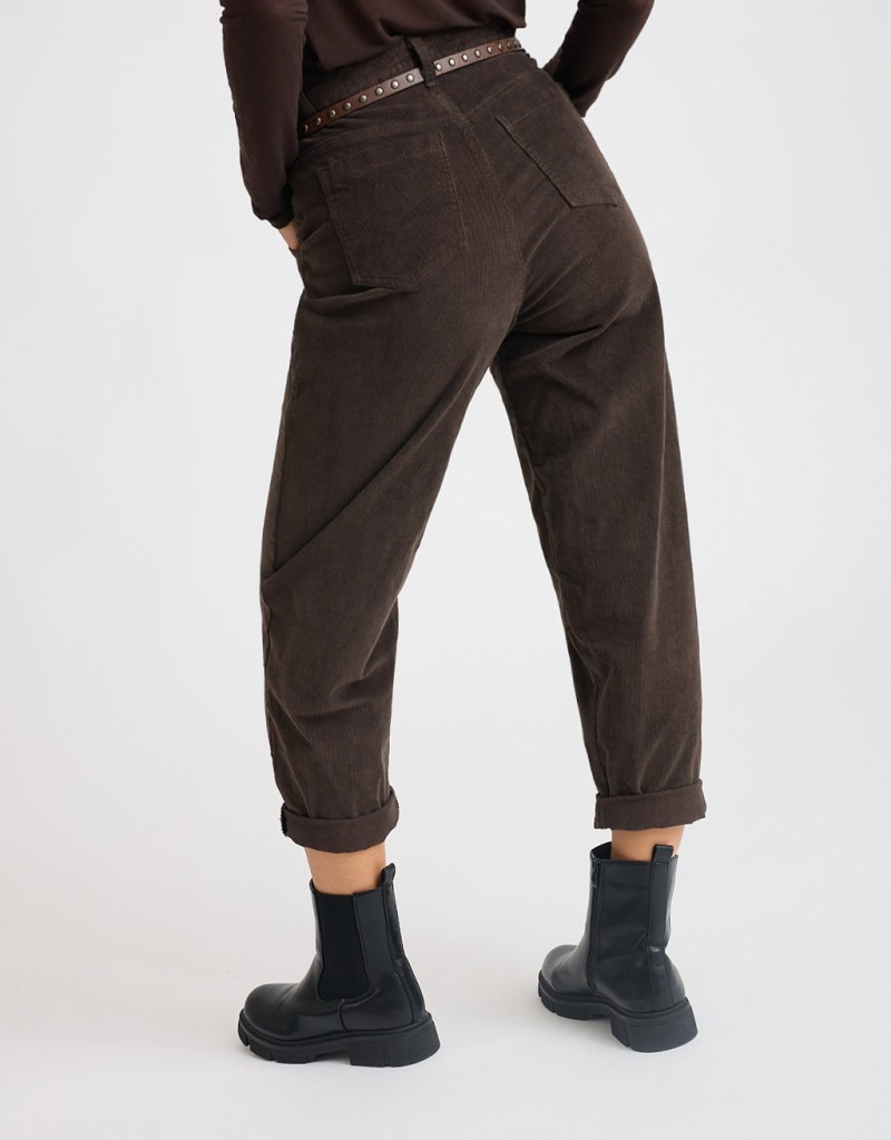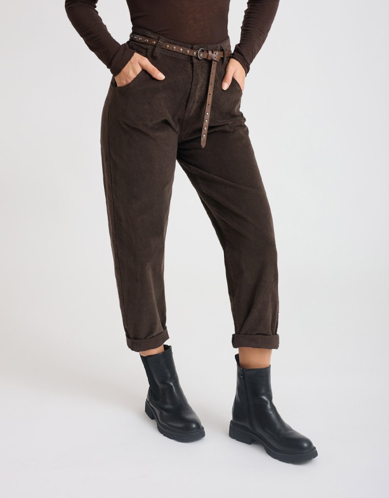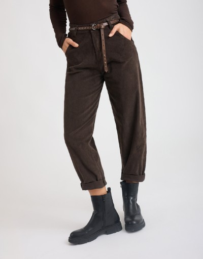 Un classico intramontabile rivisitato in chiave morbida e contemporanea! Questo pantalone in velluto a costine dona un tocco caldo e sofisticato a ogni look. Il taglio mom fit valorizza il punto vita e slancia la figura, mentre la chiusura con bottone e zip mantiene uno stile casual ma curato. Perfetto per la stagione fredda e per chi ama comfort e stile insieme.