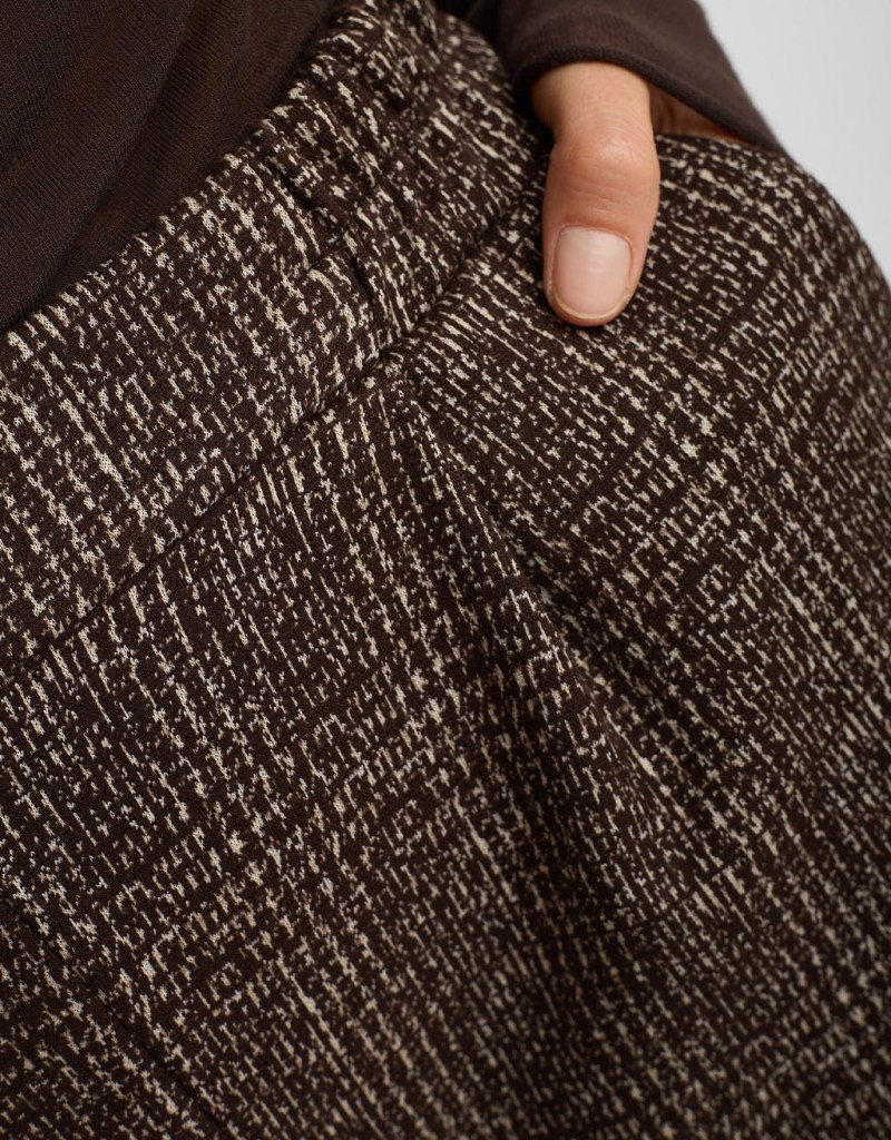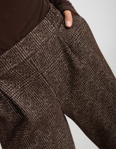 Raffinato e comodo, questo pantalone in misto viscosa è un capo chiave per la stagione fredda. Il tessuto morbido e caldo avvolge con comfort, mentre l’elastico in vita assicura una vestibilità perfetta. Le pinces frontali e le tasche laterali aggiungono un tocco sartoriale, completato dal risvolto cucito sul fondo per un look moderno e versatile.