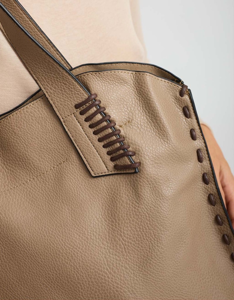 (Ogni 1,00 € speso = 1 punto)Borsa di medio-grande dimensione, ideale per accompagnarti nelle giornate più intense con stile e praticità. Presenta cuciture laterali a contrasto che ne esaltano le linee e aggiungono un tocco di originalità al design.