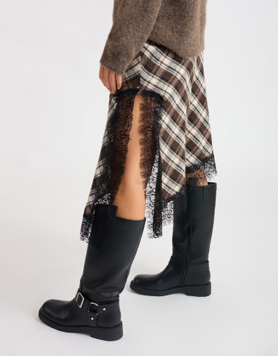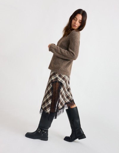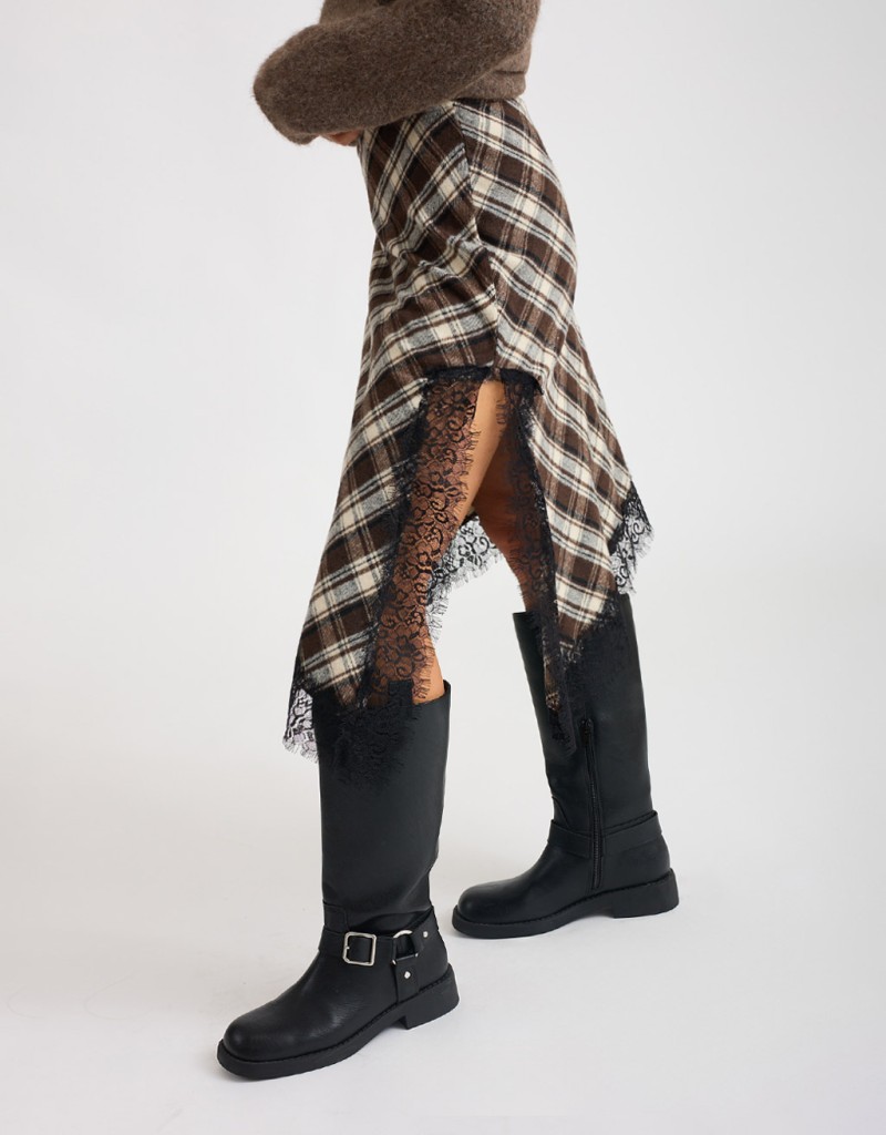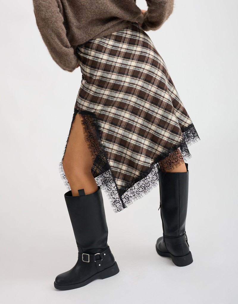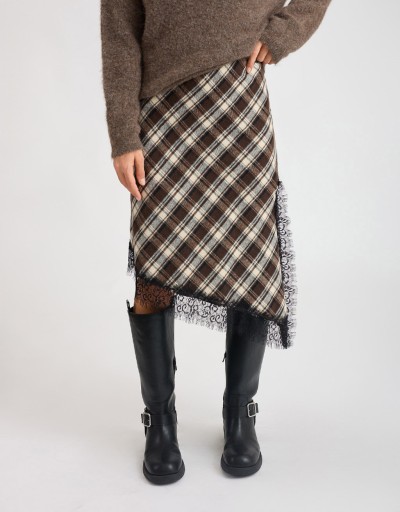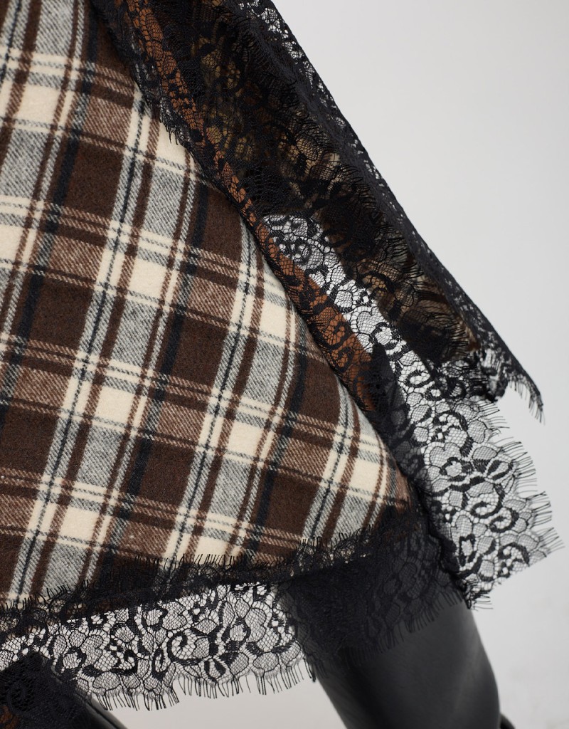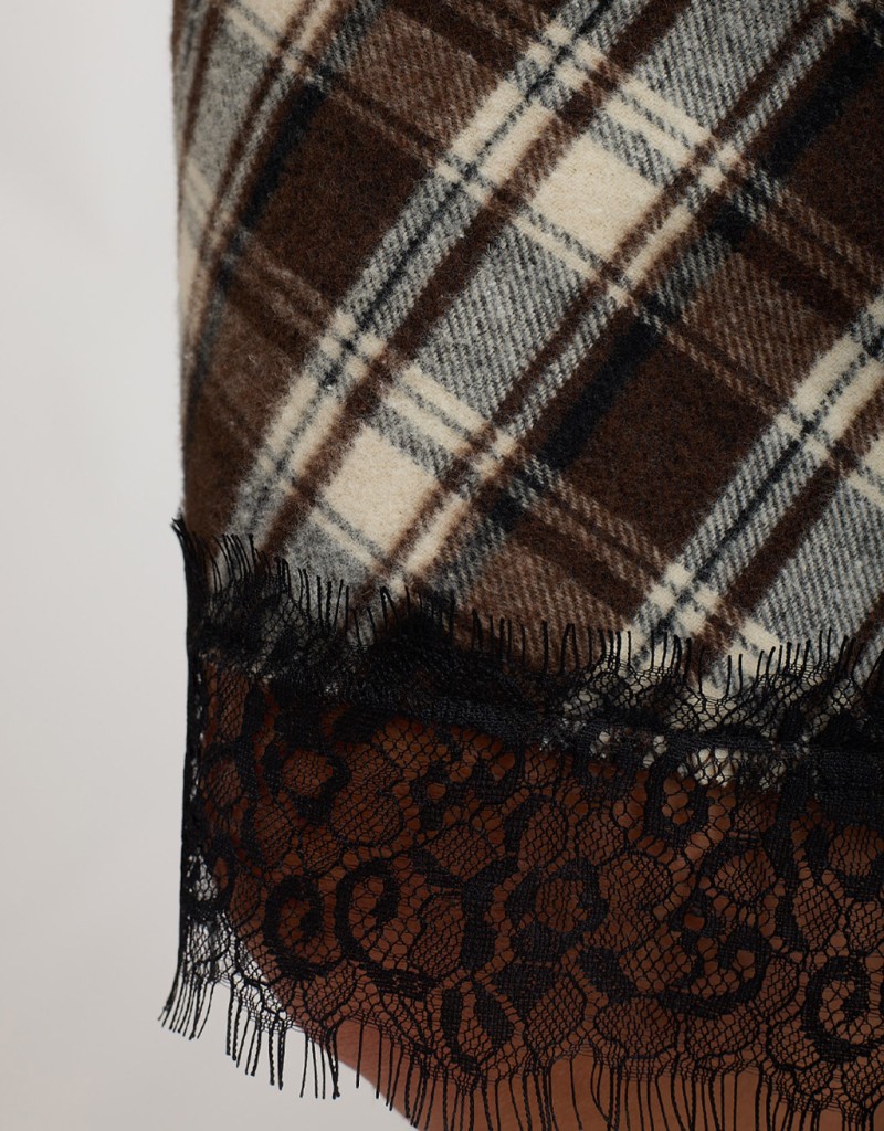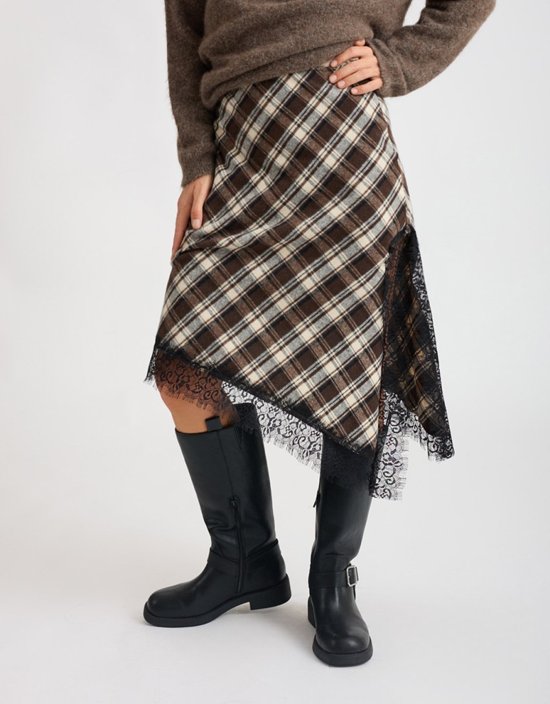 Gonna Flanella Asimmetrica Quadro Pizzo