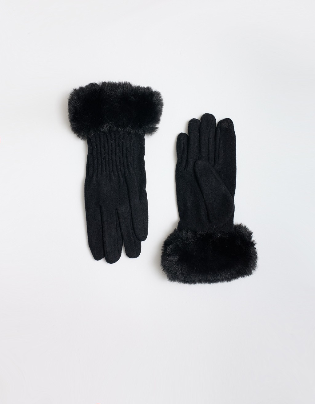 Guanto elegante con cuciture, caratterizzato da finta pelliccia nel polso e dita touch screen per poter usare il vostro telefonino senza togliere il guanto