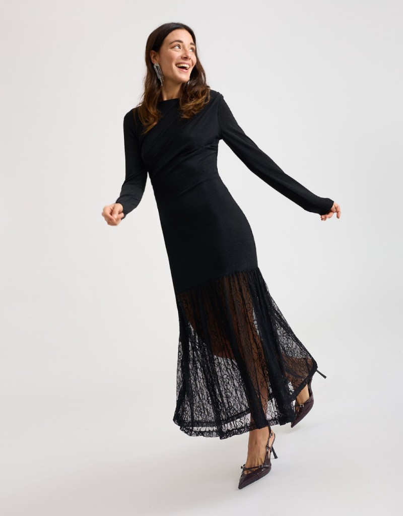 Abbinalo a un paio di décolleté o sandali con tacco e orecchini dorati per un look elegante e sofisticato. Per un tocco più moderno, indossalo con stivaletti e una giacca corta in similpelle.