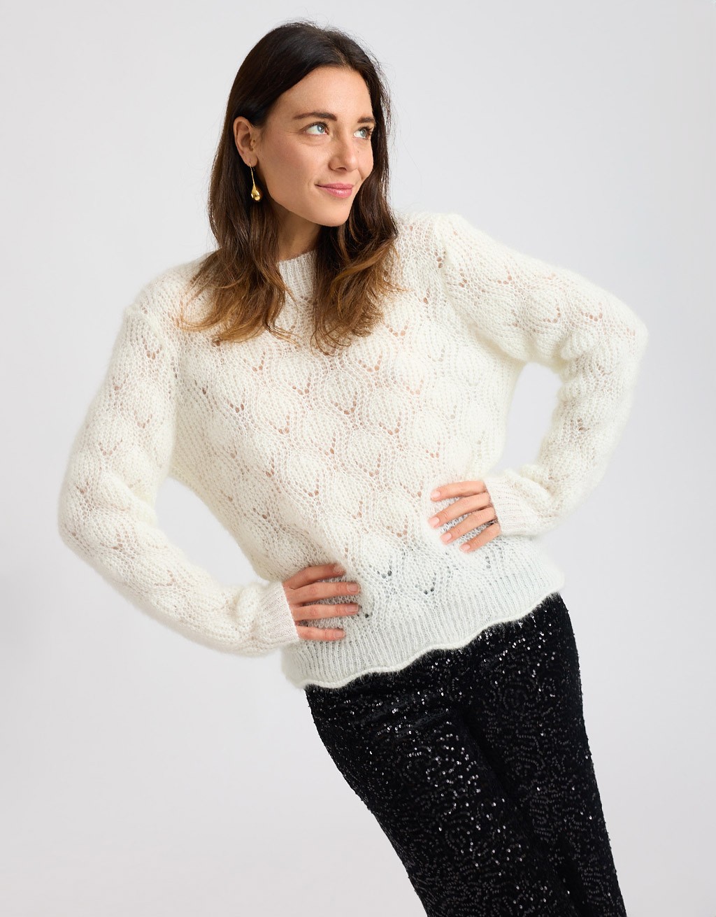 Indossalo con jeans scuri e stivaletti per un look quotidiano, oppure con un pantalone a palazzo e sneakers per un mood più rilassato. Perfetto anche sotto un cappotto oversize nelle mattine di novembre.