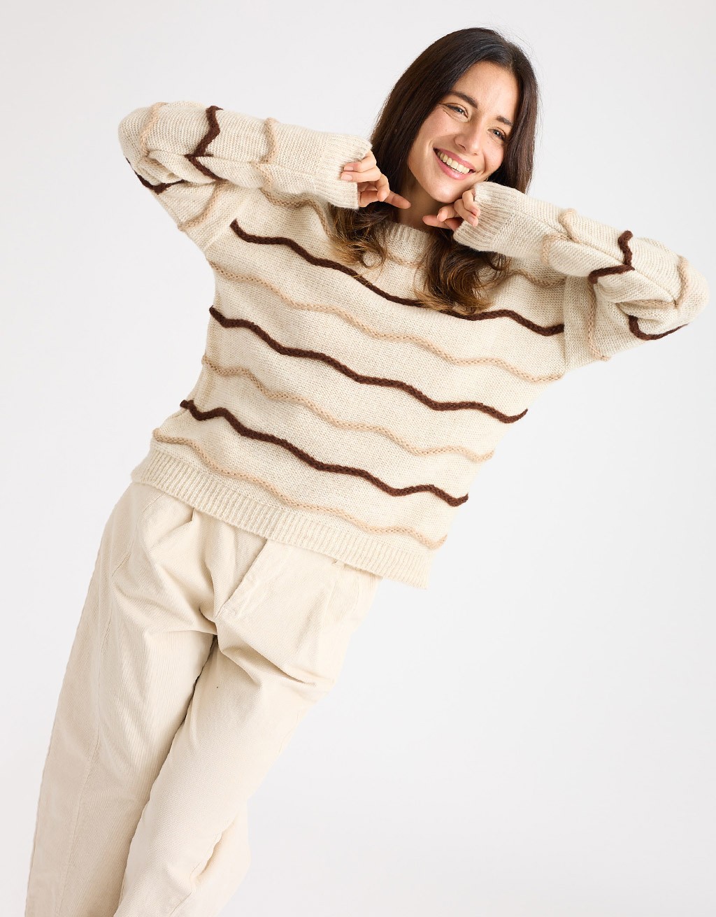 Questo maglione unisce semplicità e stile grazie al tessuto morbido e caldo e alle righe in rilievo che aggiungono un tocco moderno senza esagerare. La vestibilità morbida lo rende confortevole e perfetto per accompagnarti nelle giornate fresche, ideale da indossare sia al lavoro che nel tempo libero.