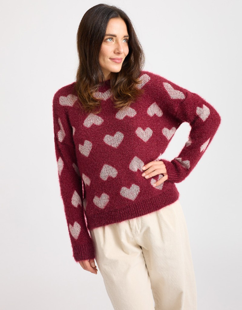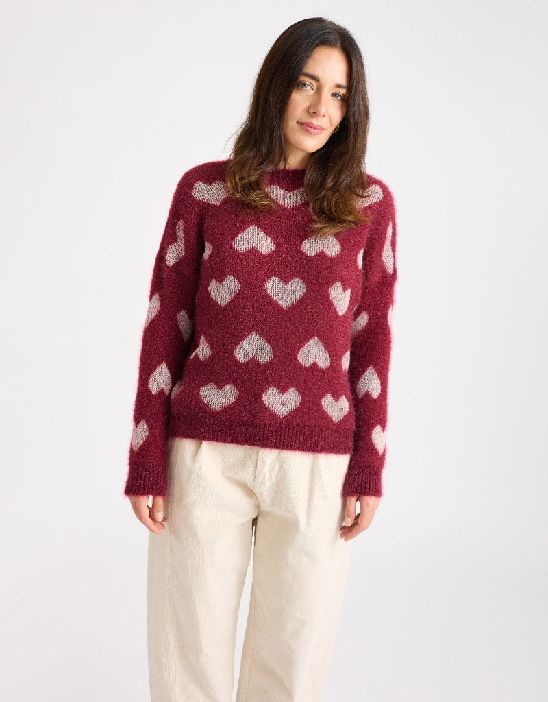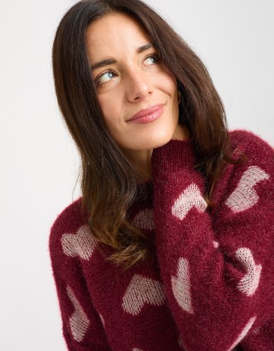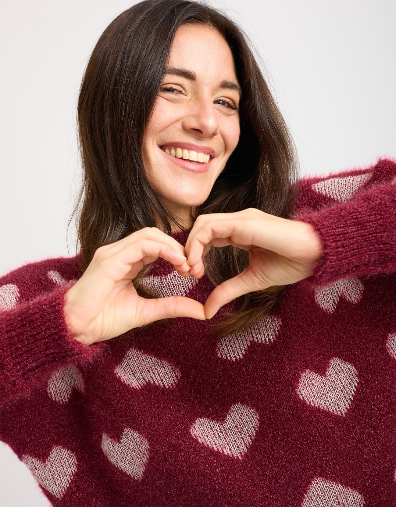 Maglione morbido, caldo e reso speciale dalla stampa a cuori, perfetta per aggiungere un tocco dolce ma sempre trendy ai look di stagione. La linea confortevole lo rende ideale da indossare ogni giorno, dal lavoro al weekend.