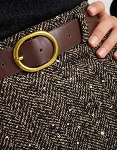 Indossala con un maglioncino soffice e stivali alti per un look glamour di stagione, oppure con una camicia morbida e mocassini per un outfit più curato. Perfetta anche con un blazer strutturato nelle giornate fresche.