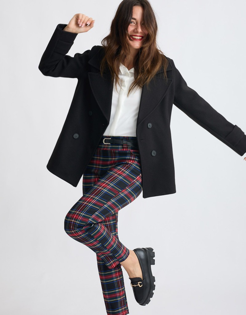 Questo pantalone aderente stile skinny unisce la linea fasciante alla fantasia tartan, perfetta per look moderni e pieni di carattere. L’elastico in vita garantisce comfort e adattabilità, mentre il fit skinny segue le linee del corpo valorizzando la silhouette senza rinunciare alla praticità.