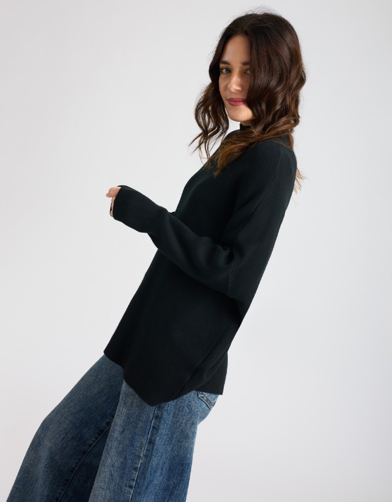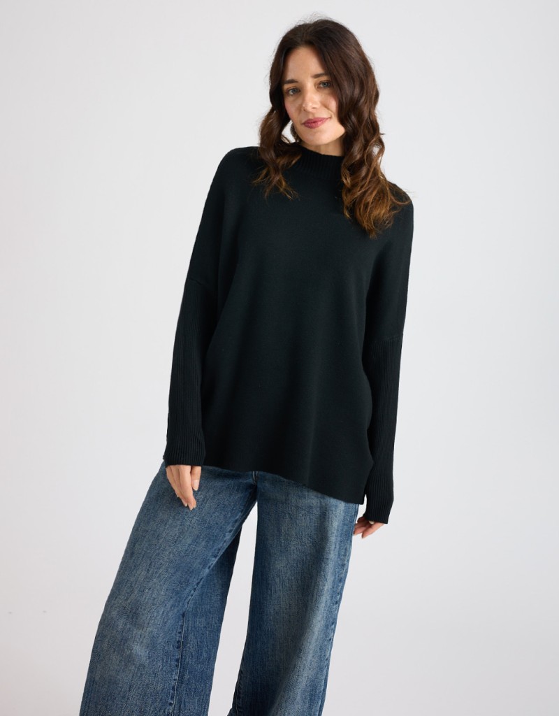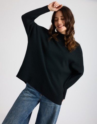 Questo maglione in tessuto morbido e caldo è il compagno ideale per le giornate fresche: il collo a lupetto avvolge senza stringere e la vestibilità over dona un look moderno e rilassato. Le maniche a costine aggiungono un tocco di stile che lo rende facile da indossare dalla mattina alla sera.