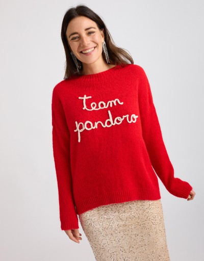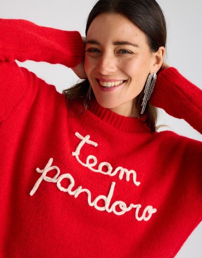 Maglione basico con scritta “Team Pandoro” cucita sul davanti: natalizio al punto giusto, senza rinunciare alla morbidezza. Il tessuto caldo avvolge con comfort nelle giornate più fredde, mentre la vestibilità morbida lo rende perfetto per look rilassati ma curati, dal mattino alla sera.