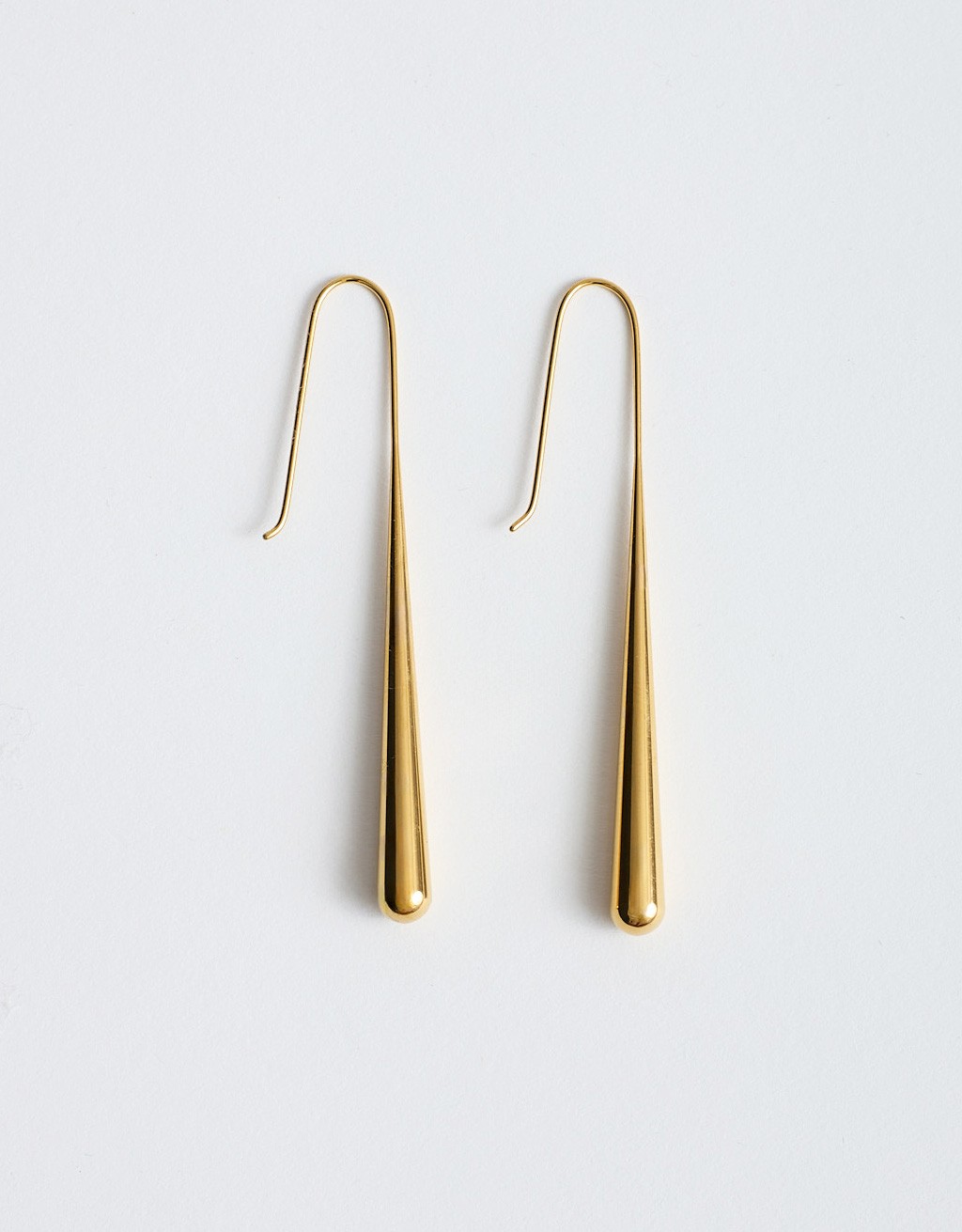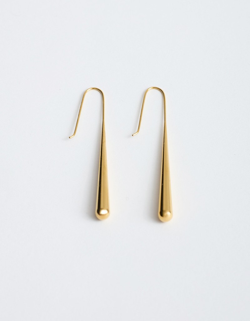 Orecchino in acciaio dal design essenziale, caratterizzato da una goccia allungata e sottile che dona eleganza e leggerezza al look. La finitura lucida esalta le linee pulite, rendendolo un accessorio raffinato e versatile, ideale per aggiungere un tocco di stile discreto ma moderno a qualsiasi outfit.