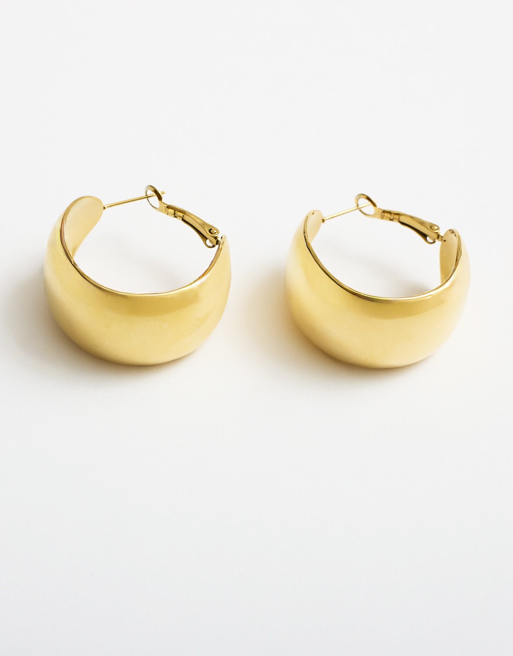 Orecchino a cerchio in acciaio lucido, resistente e leggero, perfetto per un look semplice ma sempre attuale. La finitura pulita e il design essenziale lo rendono un accessorio versatile, ideale da indossare ogni giorno e facile da abbinare a qualsiasi stile.