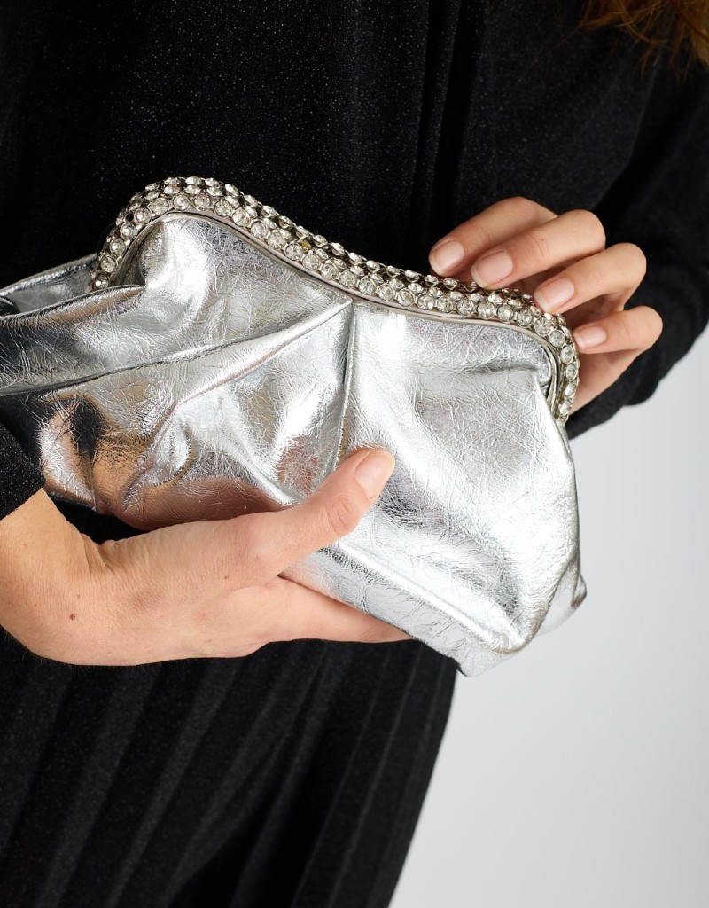 (Ogni 1,00 € speso = 1 punto)Elegante e luminosa, questa borsetta è impreziosita da un raffinato profilo in strass che ne esalta le linee e aggiunge un tocco di brillantezza senza risultare eccessivo. Il dettaglio decorativo crea un effetto chic e delicato, perfetto per completare look serali o outfit più ricercati.