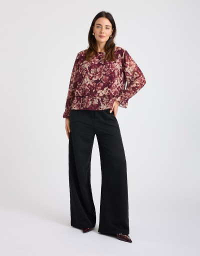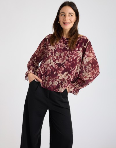 (Ogni 1,00 € speso = 1 punto)Camicetta con due strati in georgette in fantasia astratta sovrapposti sul fondo. La camicetta ha un elastico sui polsini e ha una fodera interna cucita ad esclusione delle maniche dove il tessuto presenta una lieve trasparenza.