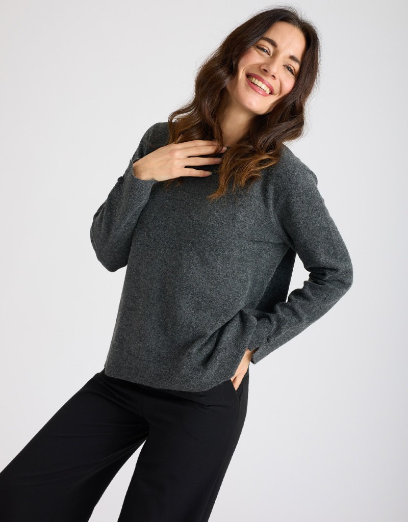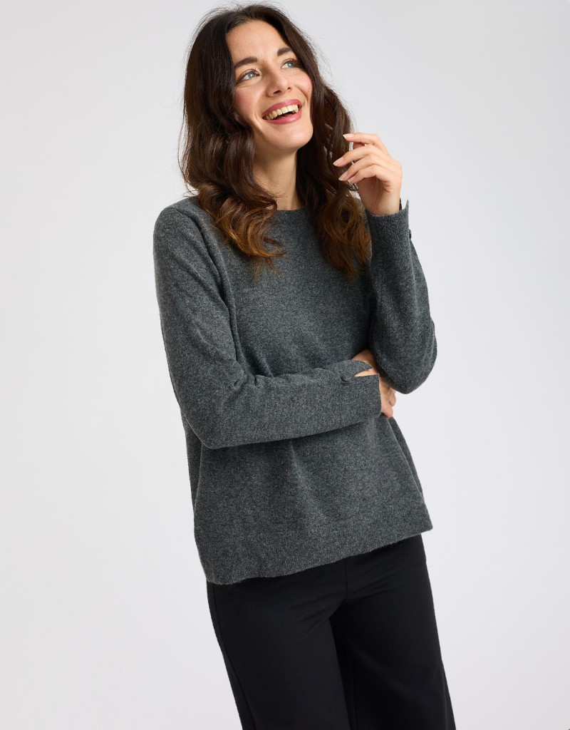 (Ogni 1,00 € speso = 1 punto)Caldo maglione melangiato con fit morbido e con maniche con bottoncini e spacchetti.