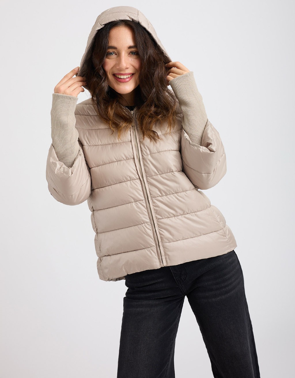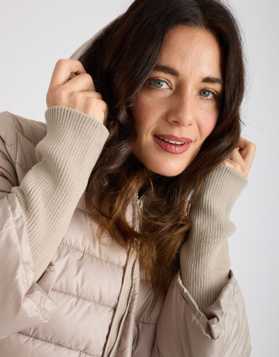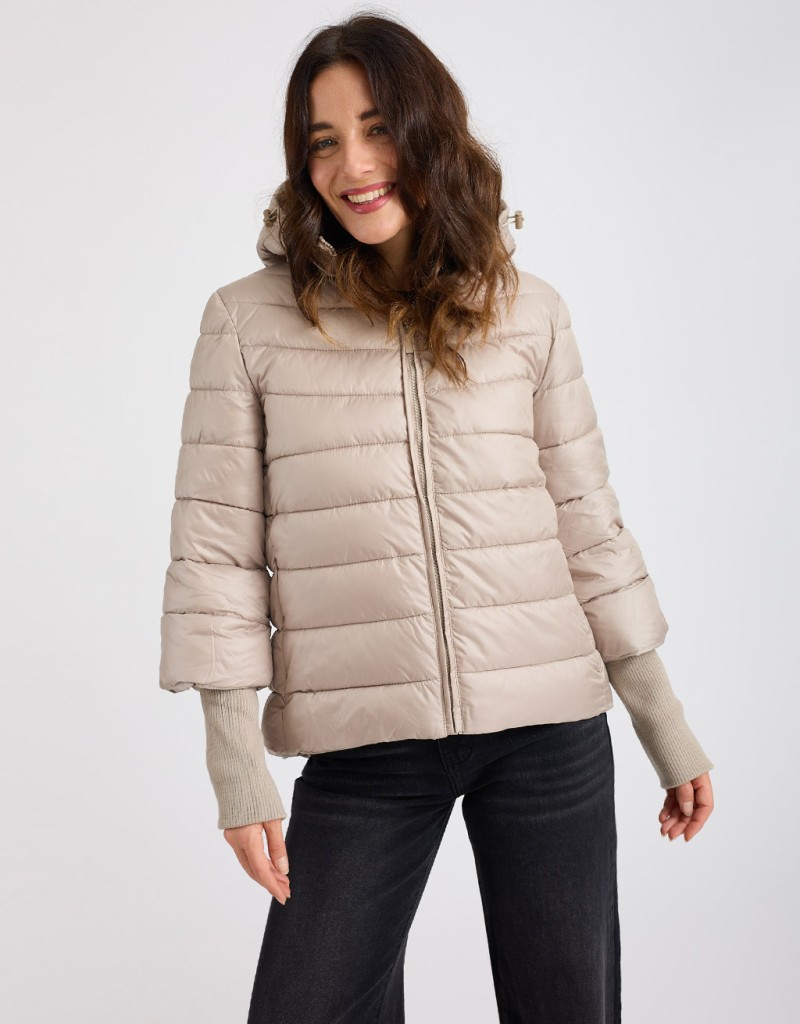(Ogni 1,00 € speso = 1 punto)Giubbotto corto imbottito con maniche in tessuto e cappuccio