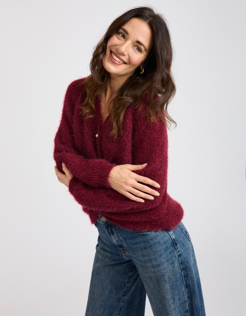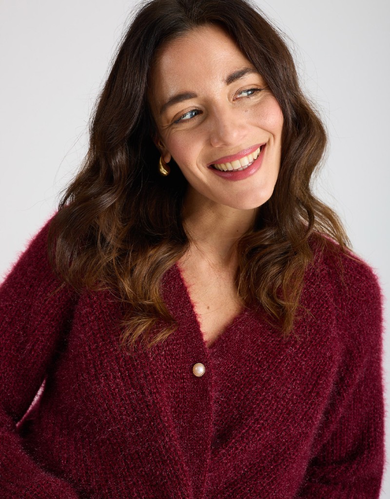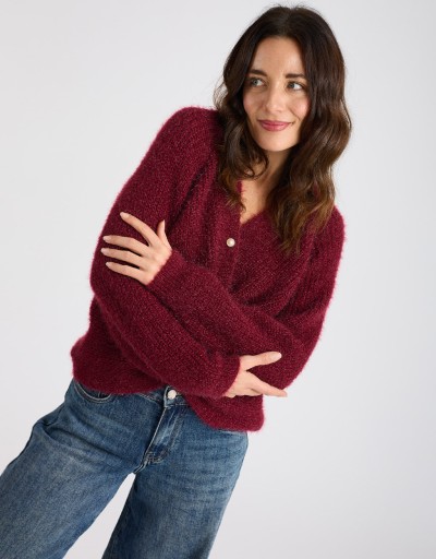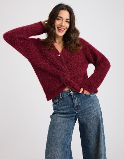 (Ogni 1,00 € speso = 1 punto)Caldo e soffice maglione con nodo frontale e bottoncino sulla scollatura a v.