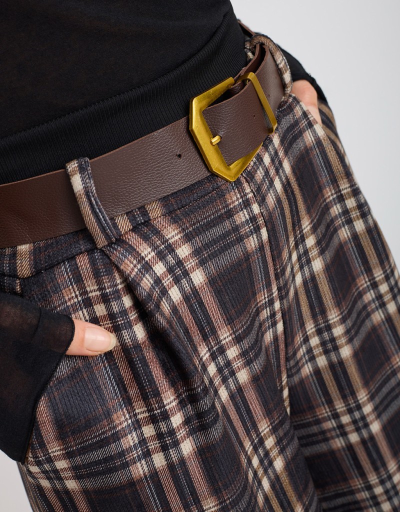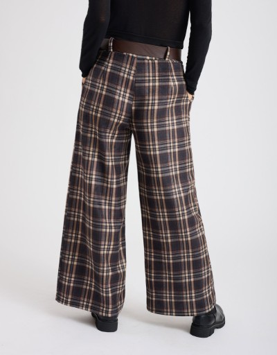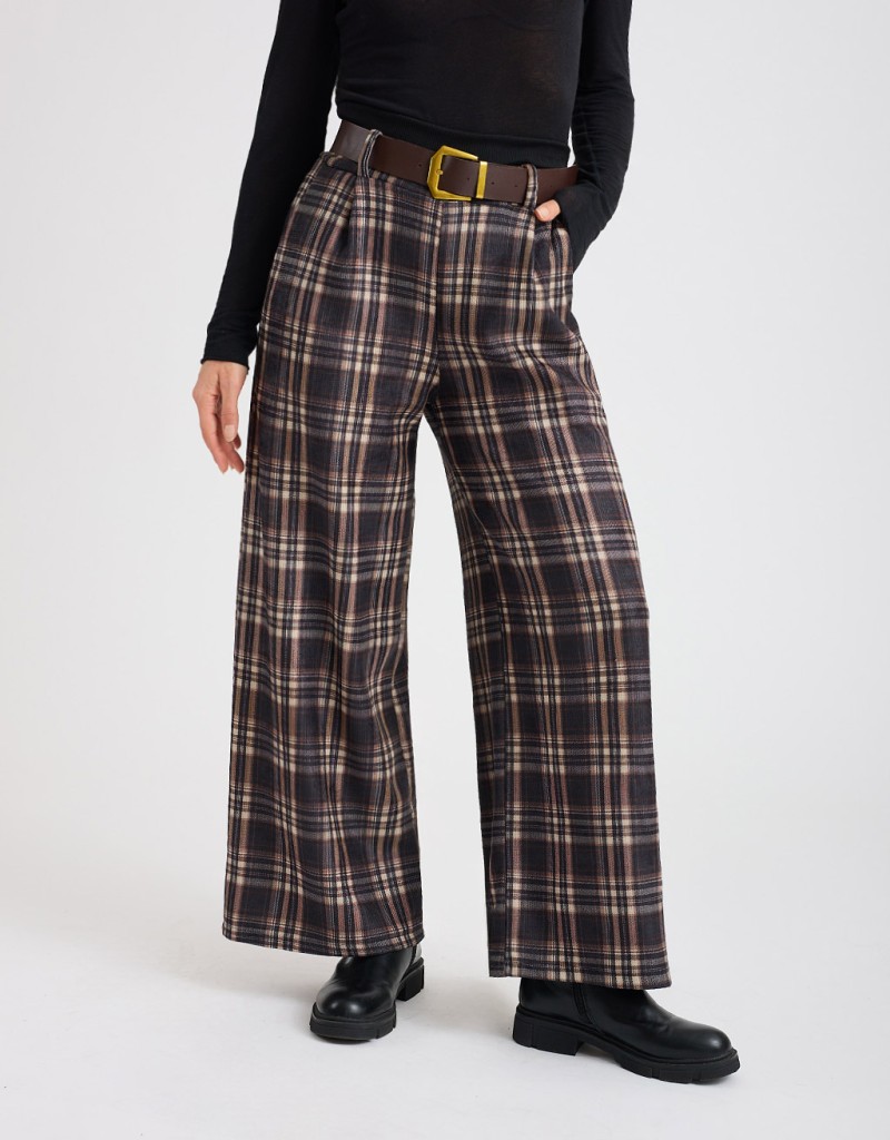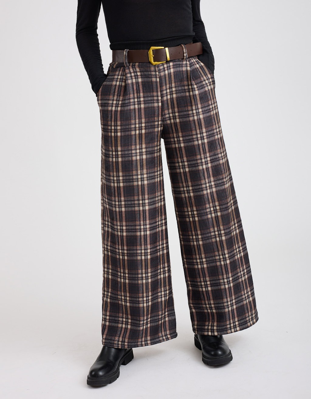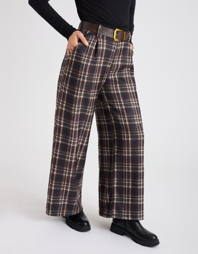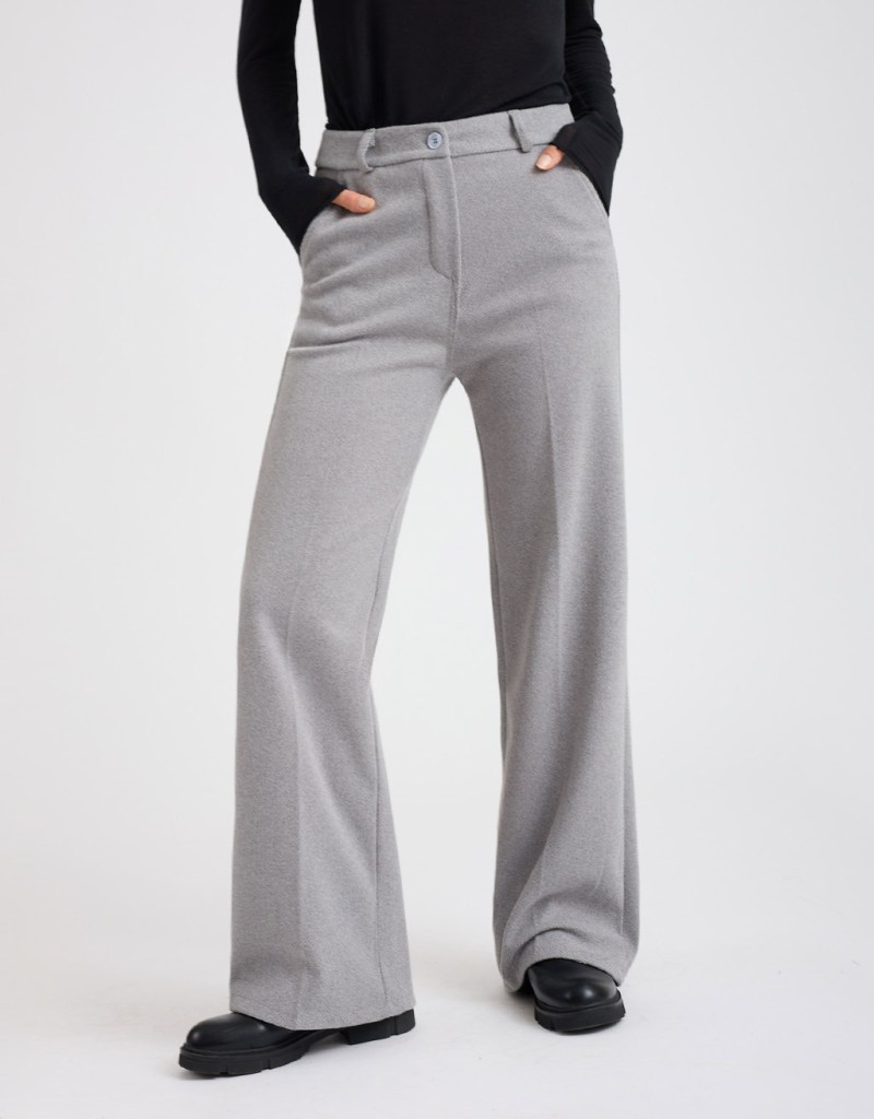 Pantalone palazzo in ciniglia con fascia elastica in costine.