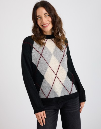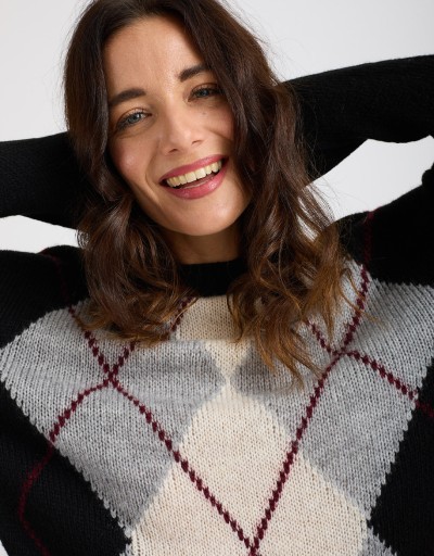 (Ogni 1,00 € speso = 1 punto)Caldo maglione con lavorazione a rombi frontale